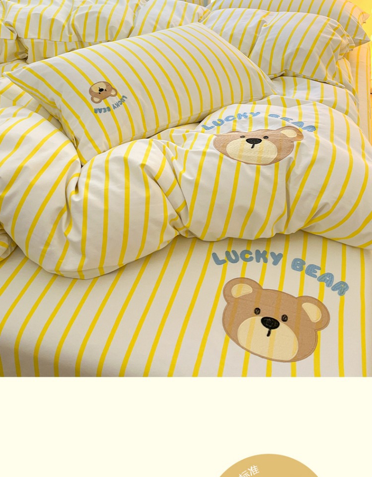여름 귀여운 만화 면 오래 된 거친 천 침대 4 조각 세트 100 면 침대 시트 퀼트 커버 2025 새로운 스타일 침구