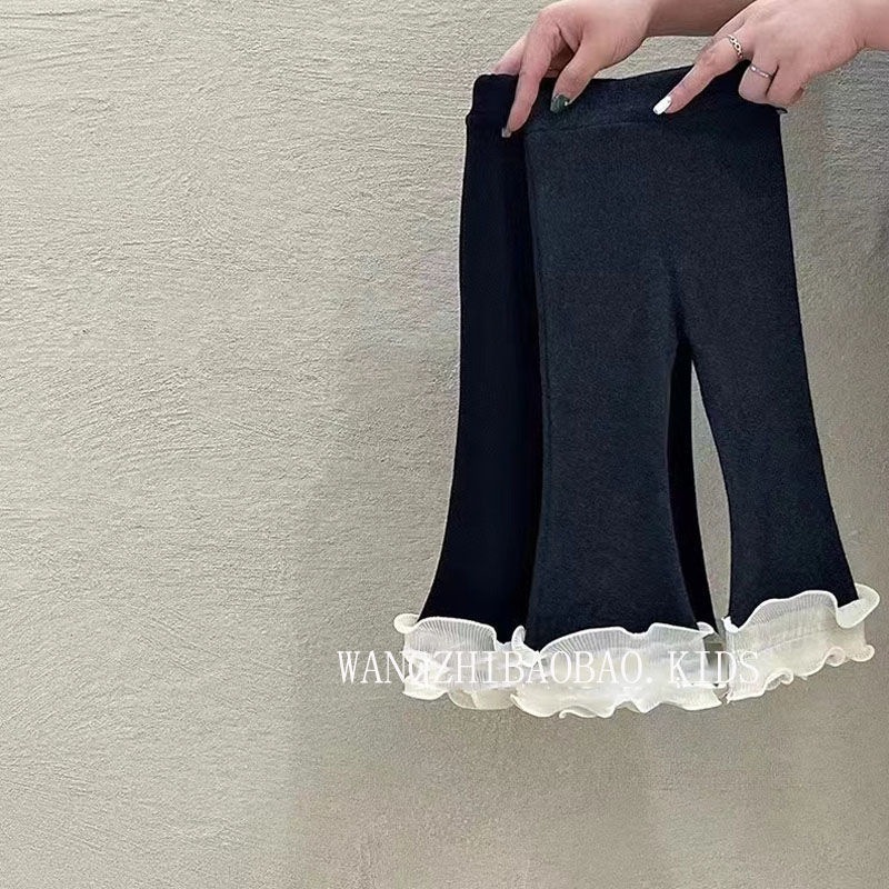 봄과 가을 여성 아동복 레깅스 아기의 서양식 어린이 성격 유행 인터넷 축하 레이스 바느질 탄성 플래 바지스토어 가기