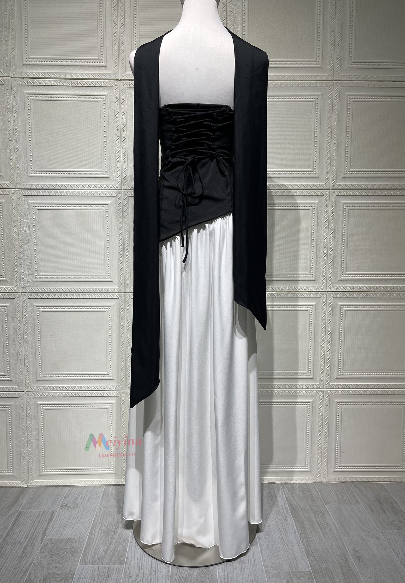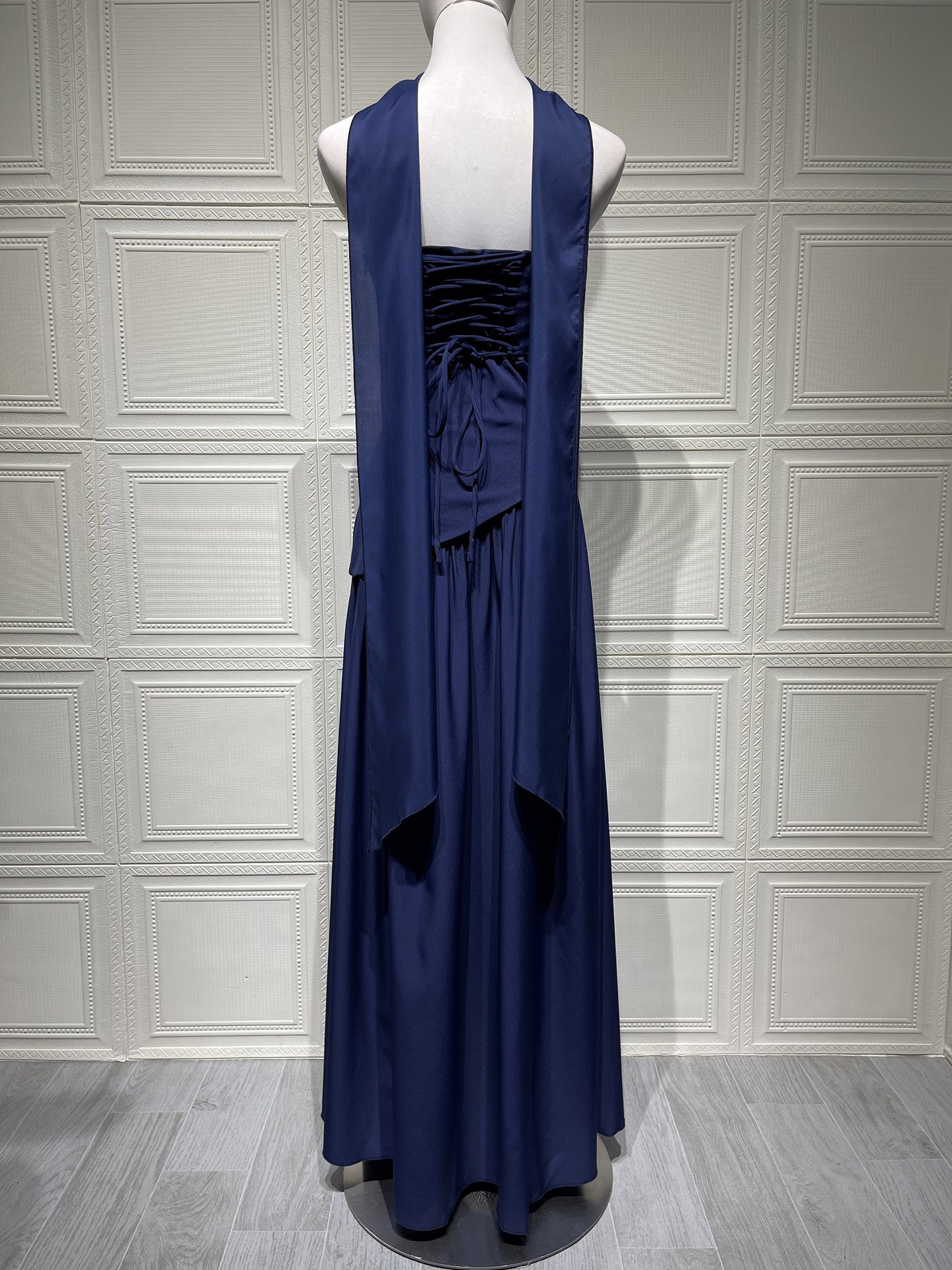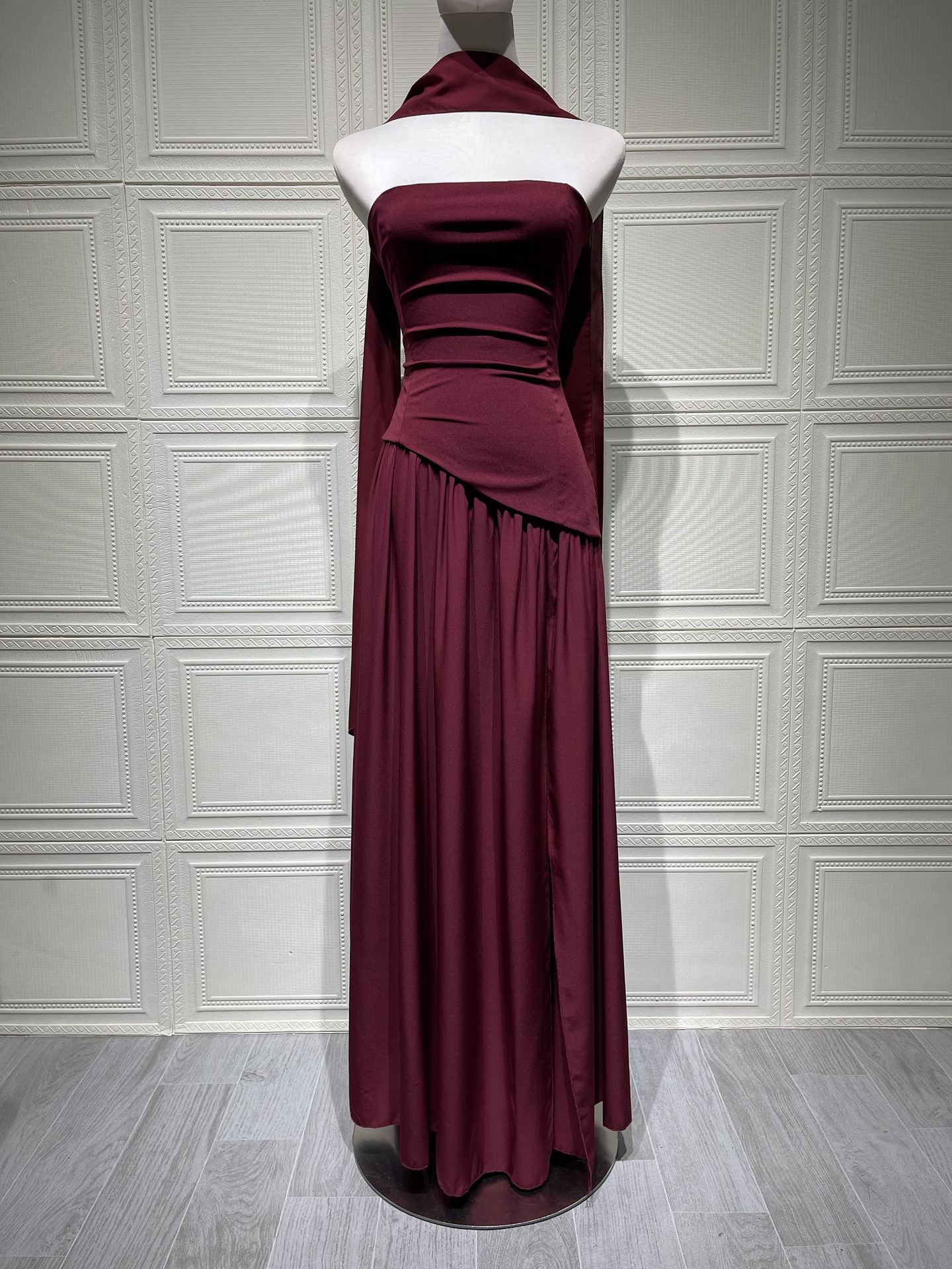 2025 유럽과 미국의 국경 간 여성 스트랩리스 솔리드 컬러 분할 원피스 패션 섹시한 백리스 하이 스플릿 롱 원피스 뉴