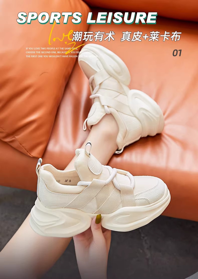 정품 가죽 작은 토레 신발 여성 내부 높이 증가 2025 봄 올매치 두꺼운 밑창 여성 신발 틈새 캐주얼 운동화