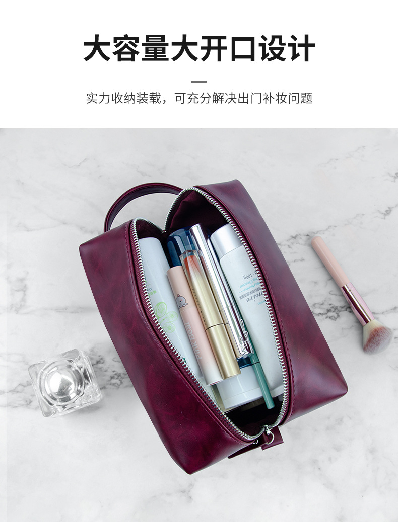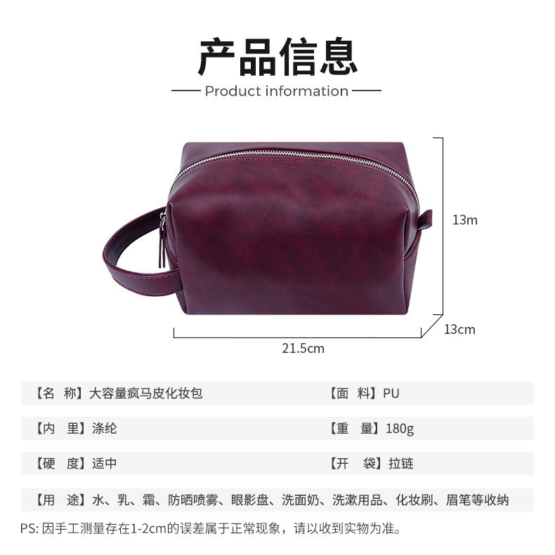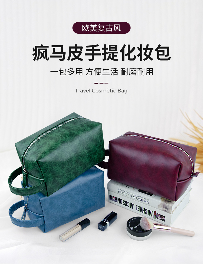 复古疯马pu皮新款跨境化妆包欧美大容量旅游多功能手提洗漱收纳包