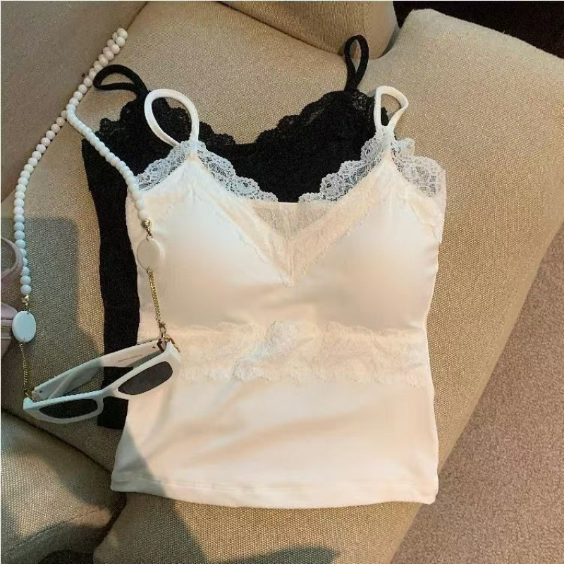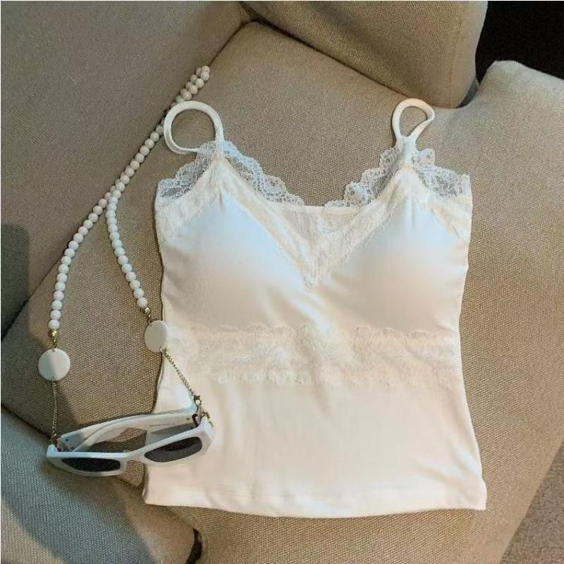 레이스 스파이스 바느질 카미솔 여성의 봄과 여름 새로운 스타일 민소매 쇼트탑 가슴 패드 칼라 섹시한 순수한 욕망 민소매스토어 가기