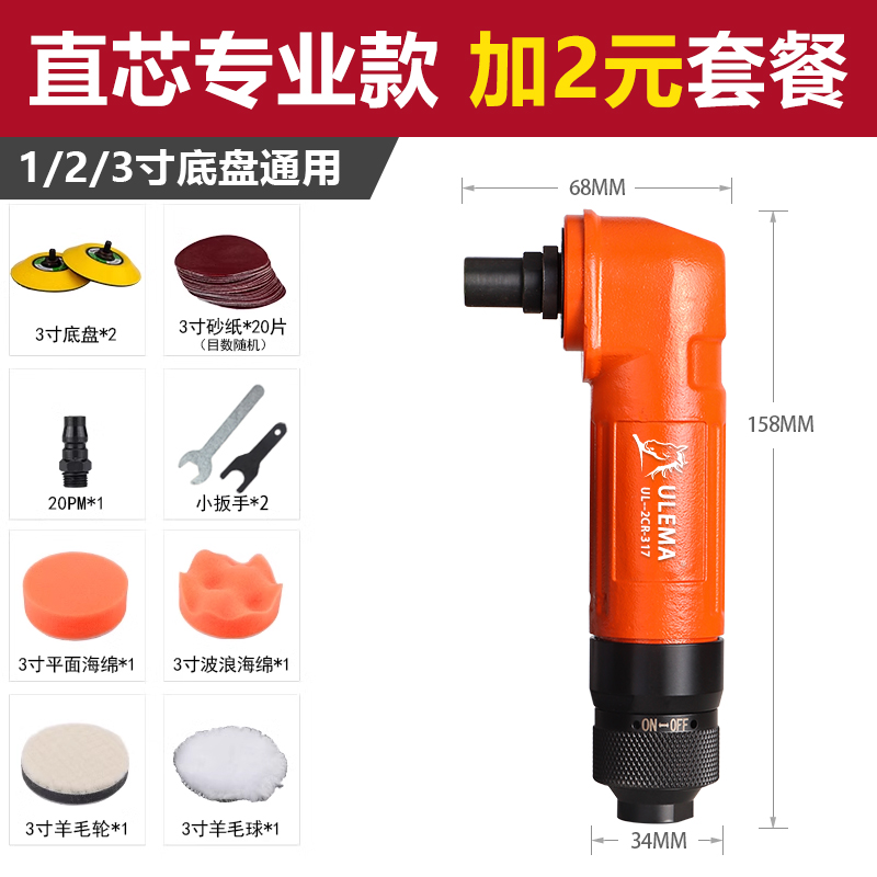 ULEMA1 인치 2 인치 3 인치 공압 연삭 기계 소형 자동차 왁싱 연마 건식 연삭 기계 90 도 직각 바람 연삭