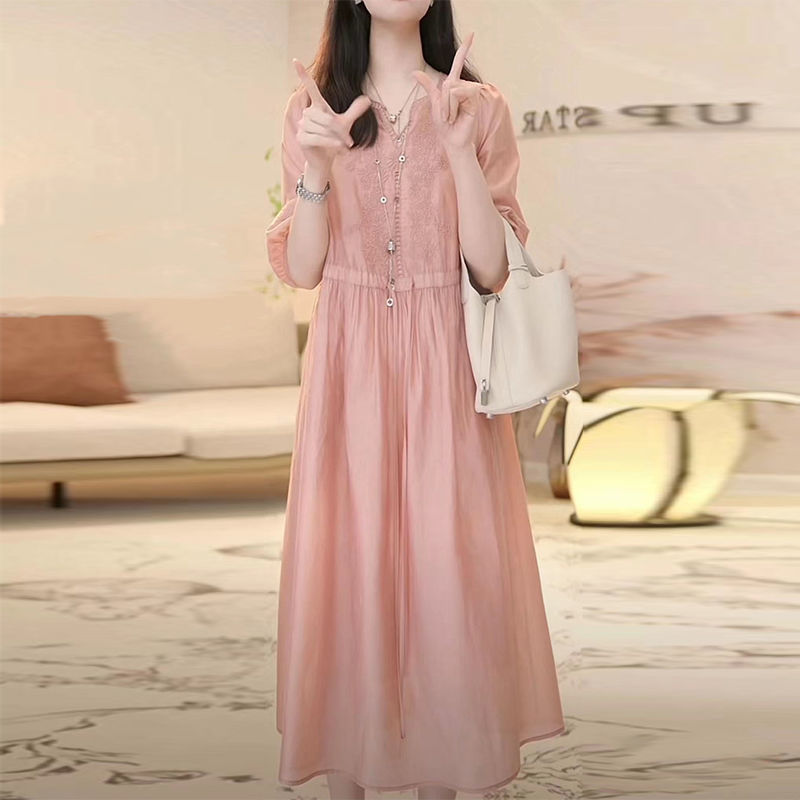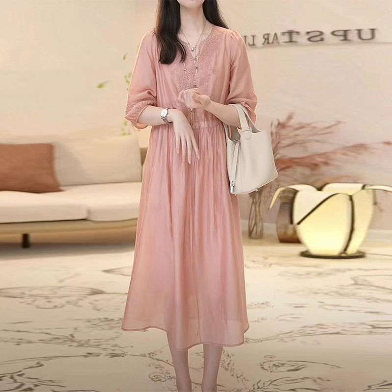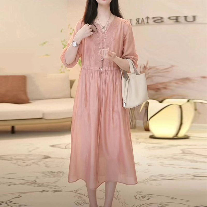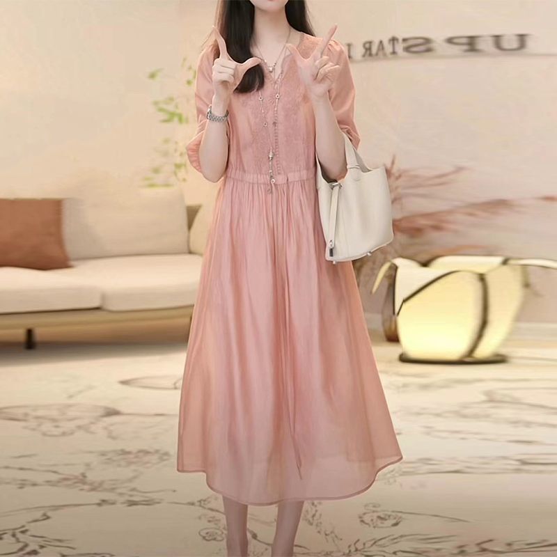 하이 엔드 원피스 새로운 여름 V-목 원피스 여성 하이 엔드 원피스 새로운 느슨한 슬림 원피스 게으른 스타일