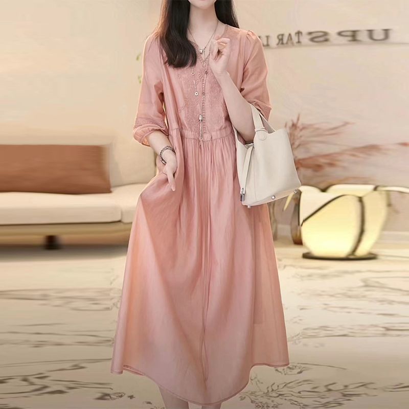 하이 엔드 원피스 새로운 여름 V-목 원피스 여성 하이 엔드 원피스 새로운 느슨한 슬림 원피스 게으른 스타일스토어 가기