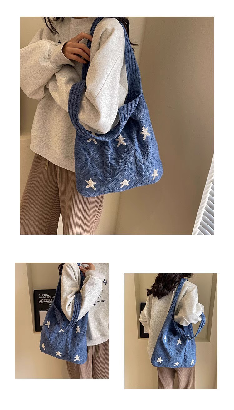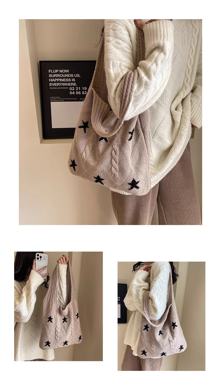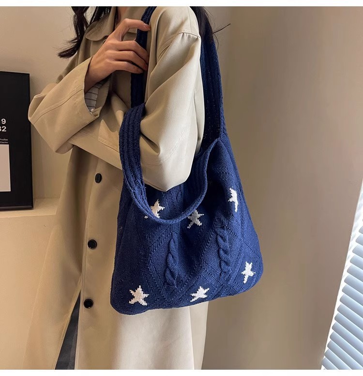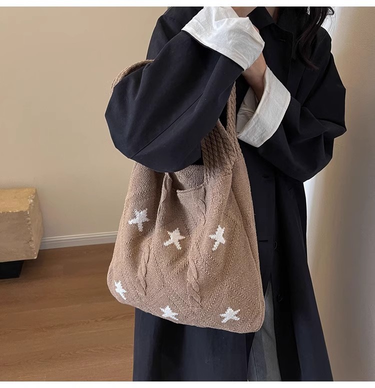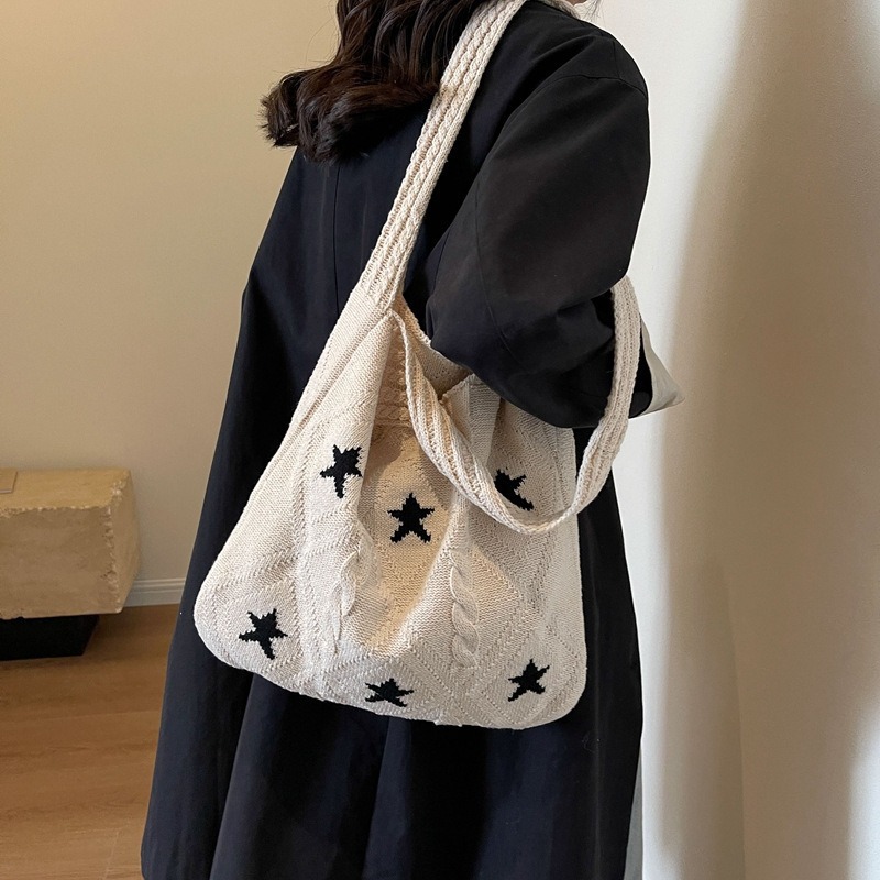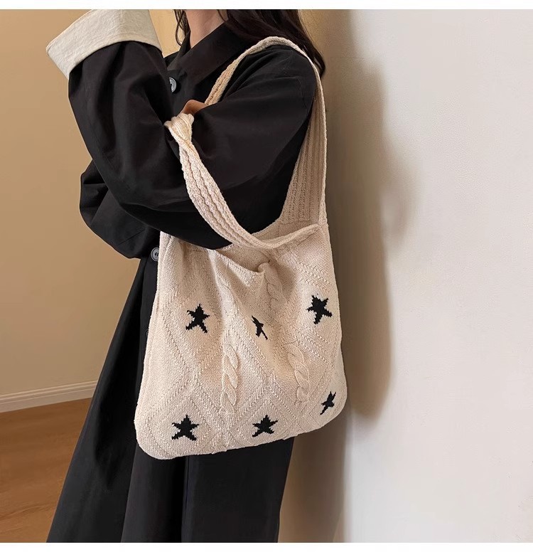 새로운 국경 니트 백 짠 가방 모든 경기 어깨 가방 여성 가방 감각 절묘한 대용량 토트 백스토어 가기