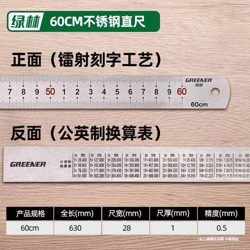 녹색 숲 강철 통치자가 두껍게 단단한 15 단단한 통치자 30/50cm 긴 통치자 60 철 통치자 1 미터 고정밀 스테인리스 통치자스토어 가기