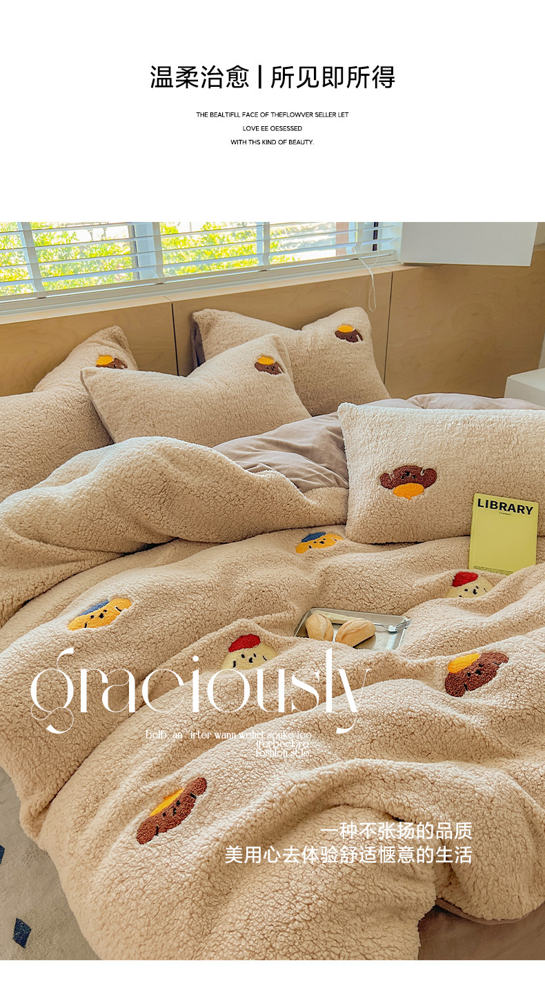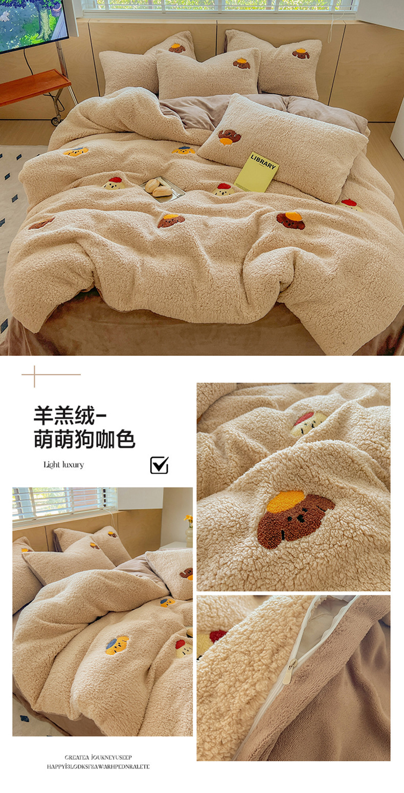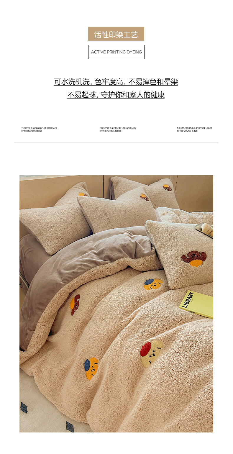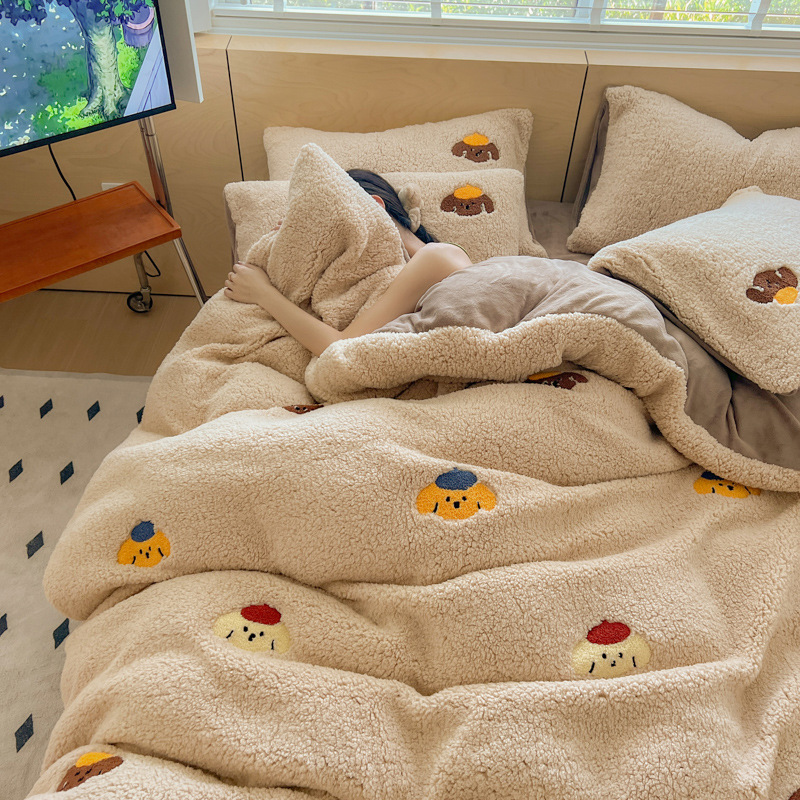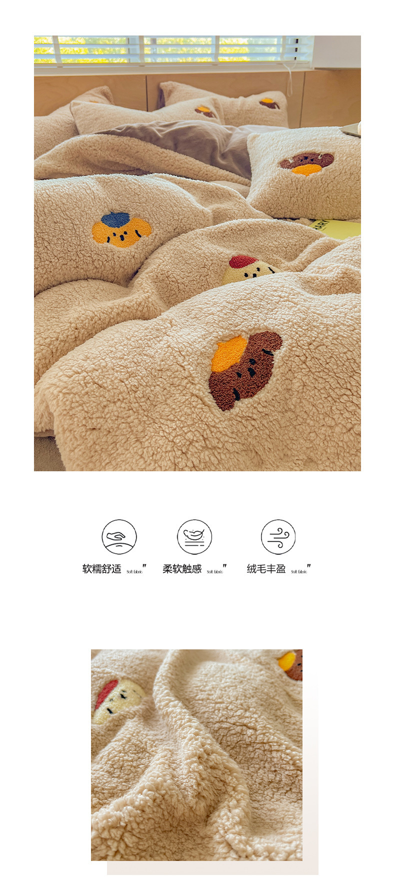 겨울 두꺼운 양고기 양털 4 조각 세트 우유 양털 침대 시트 퀼트 커버 난통 플란넬 침구 기모 퀼트 커버