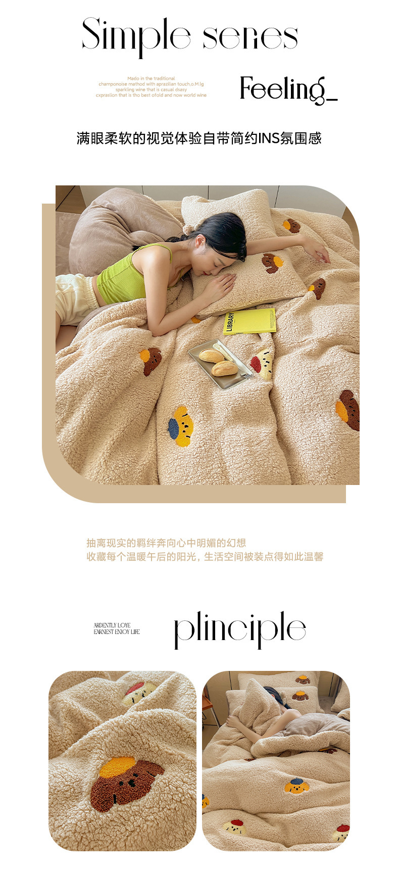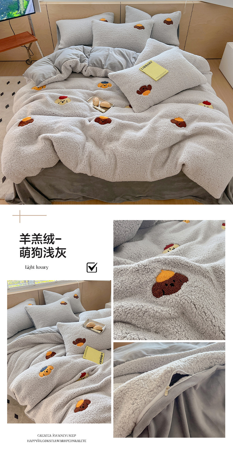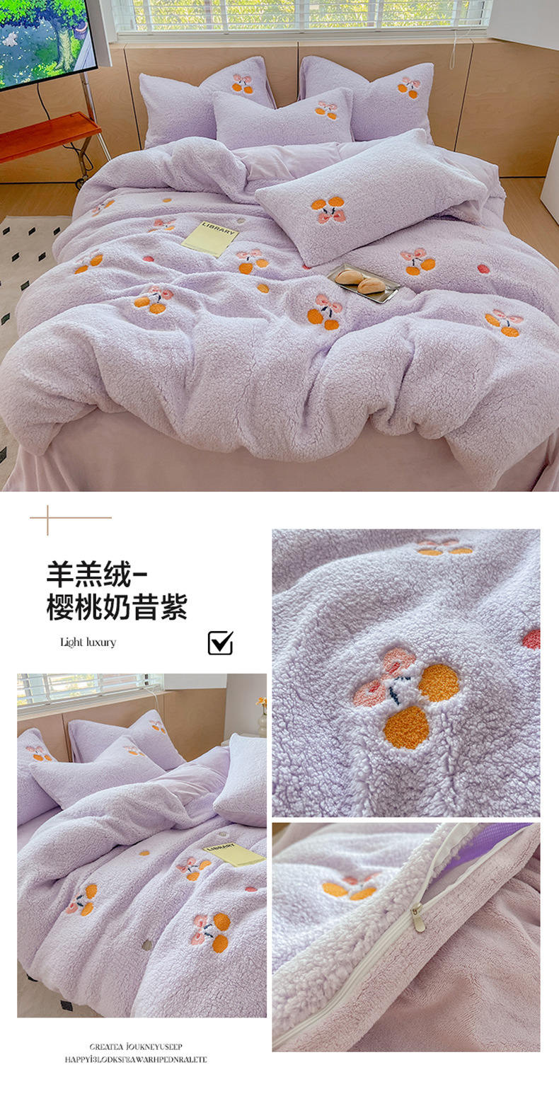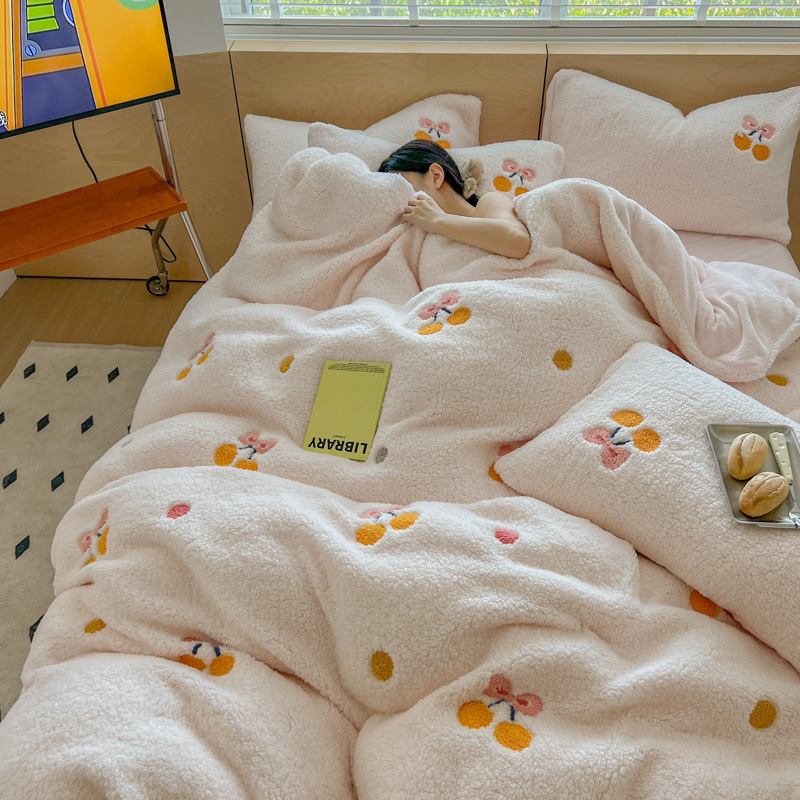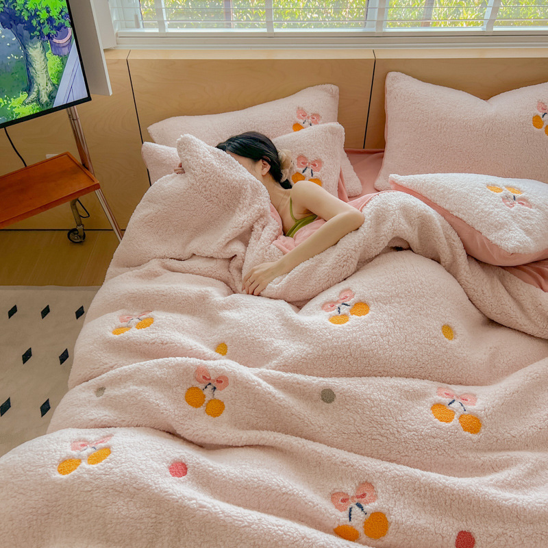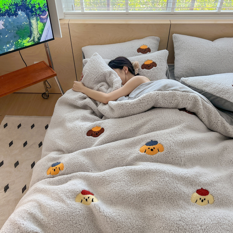 겨울 두꺼운 양고기 양털 4 조각 세트 우유 양털 침대 시트 퀼트 커버 난통 플란넬 침구 기모 퀼트 커버