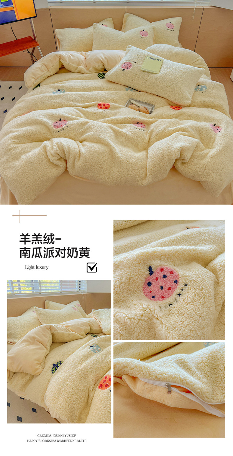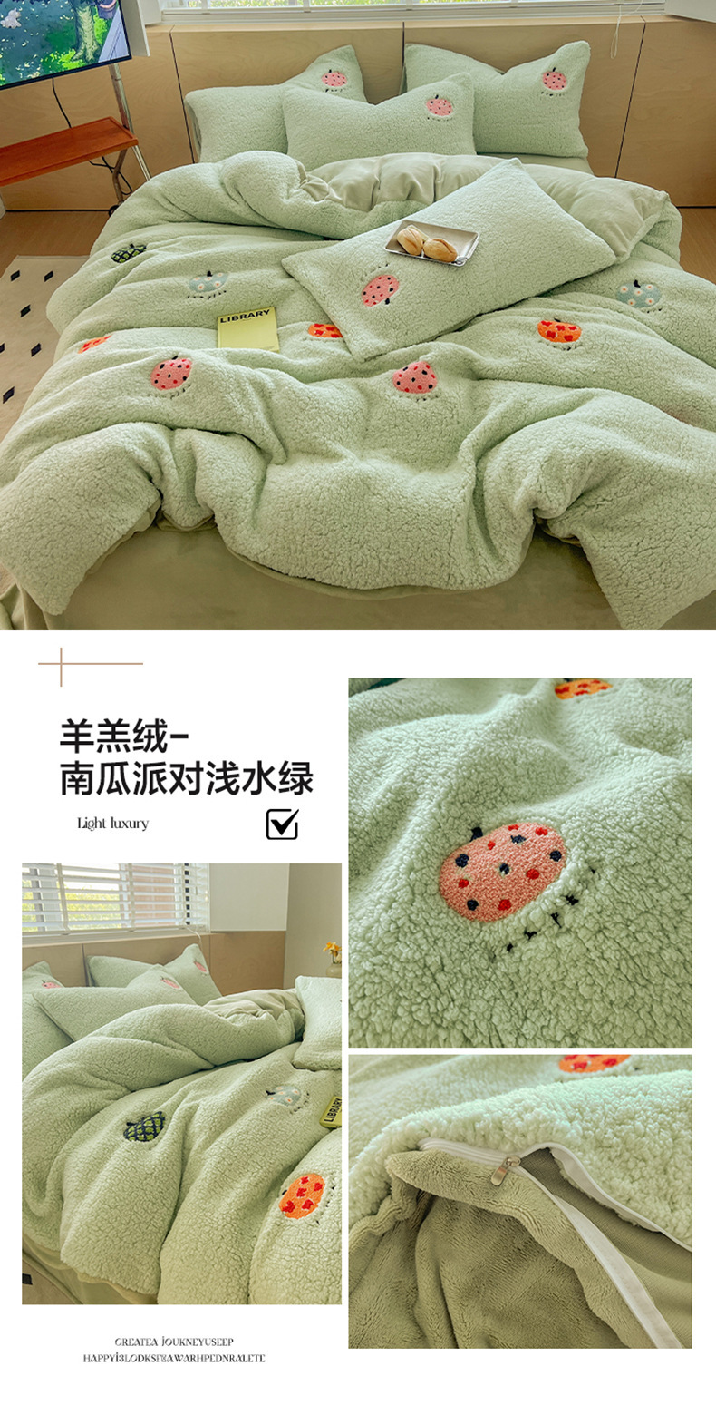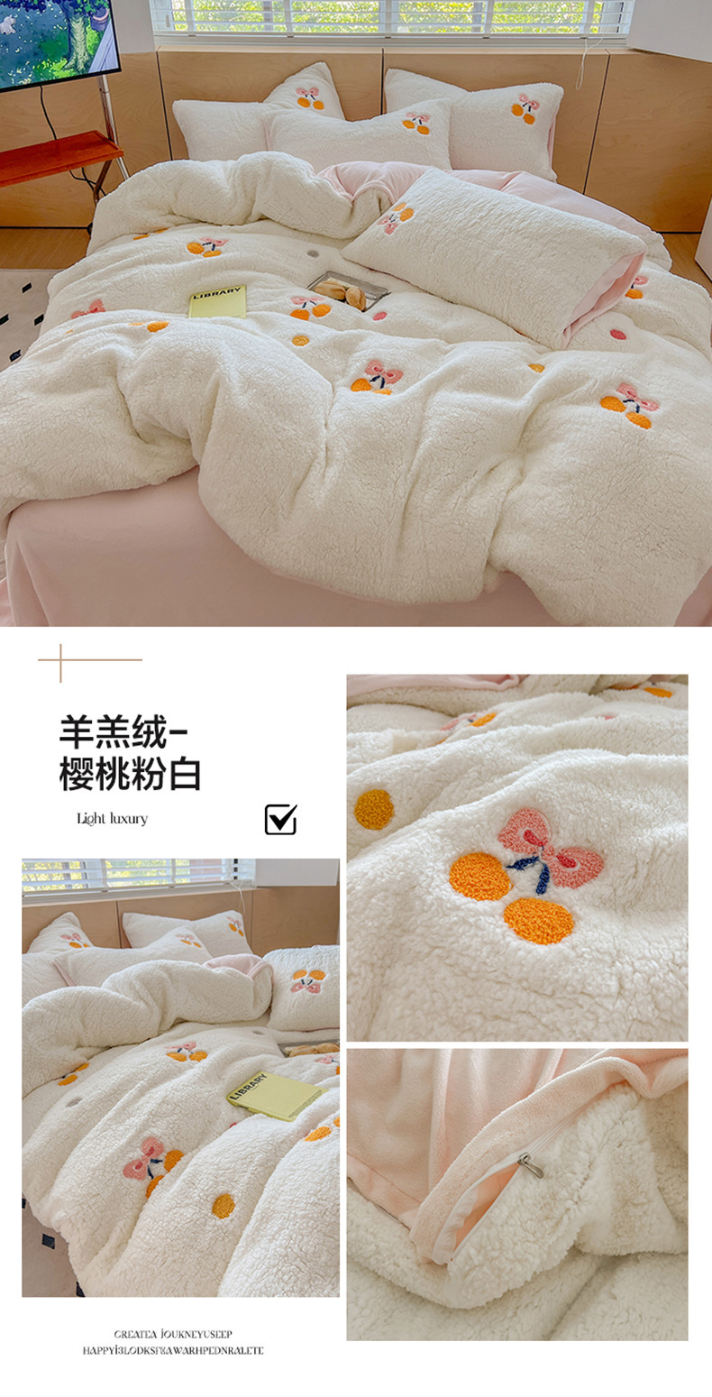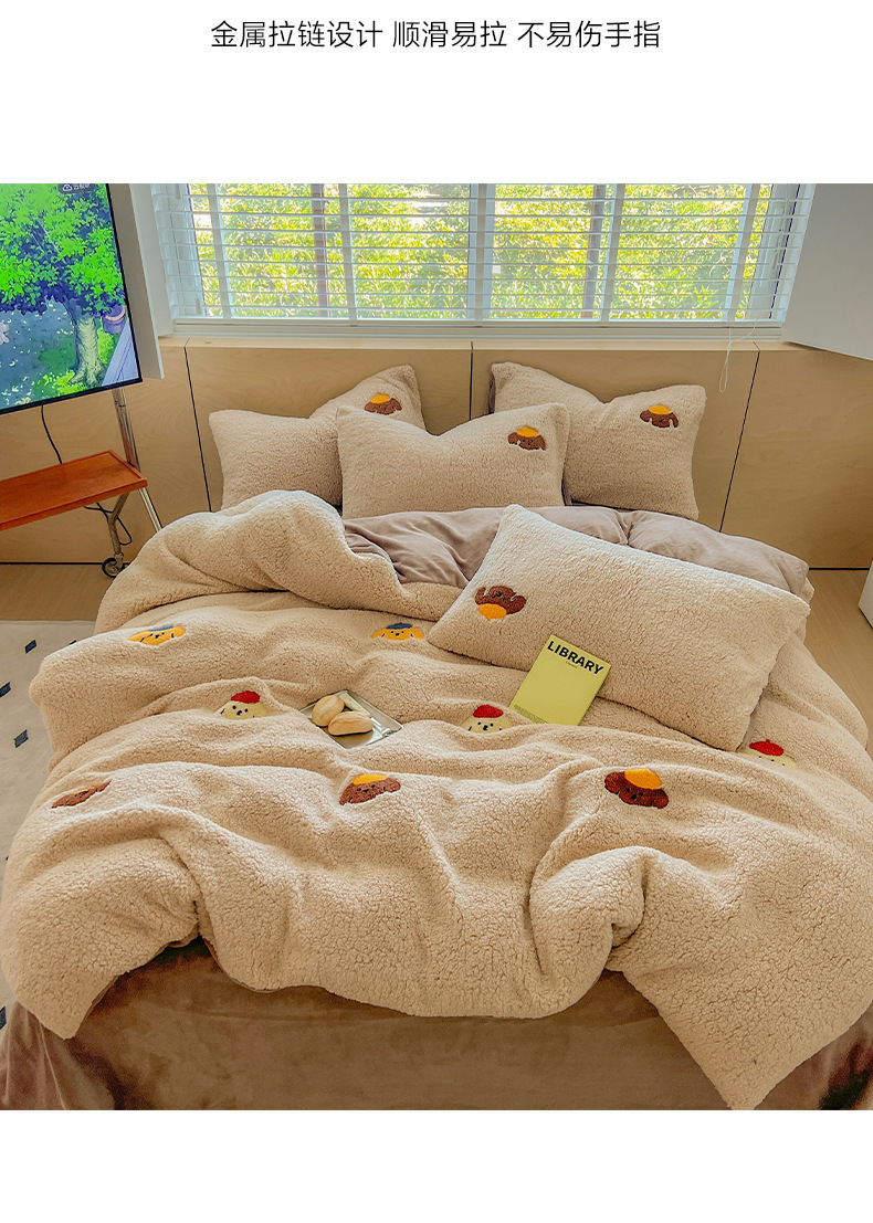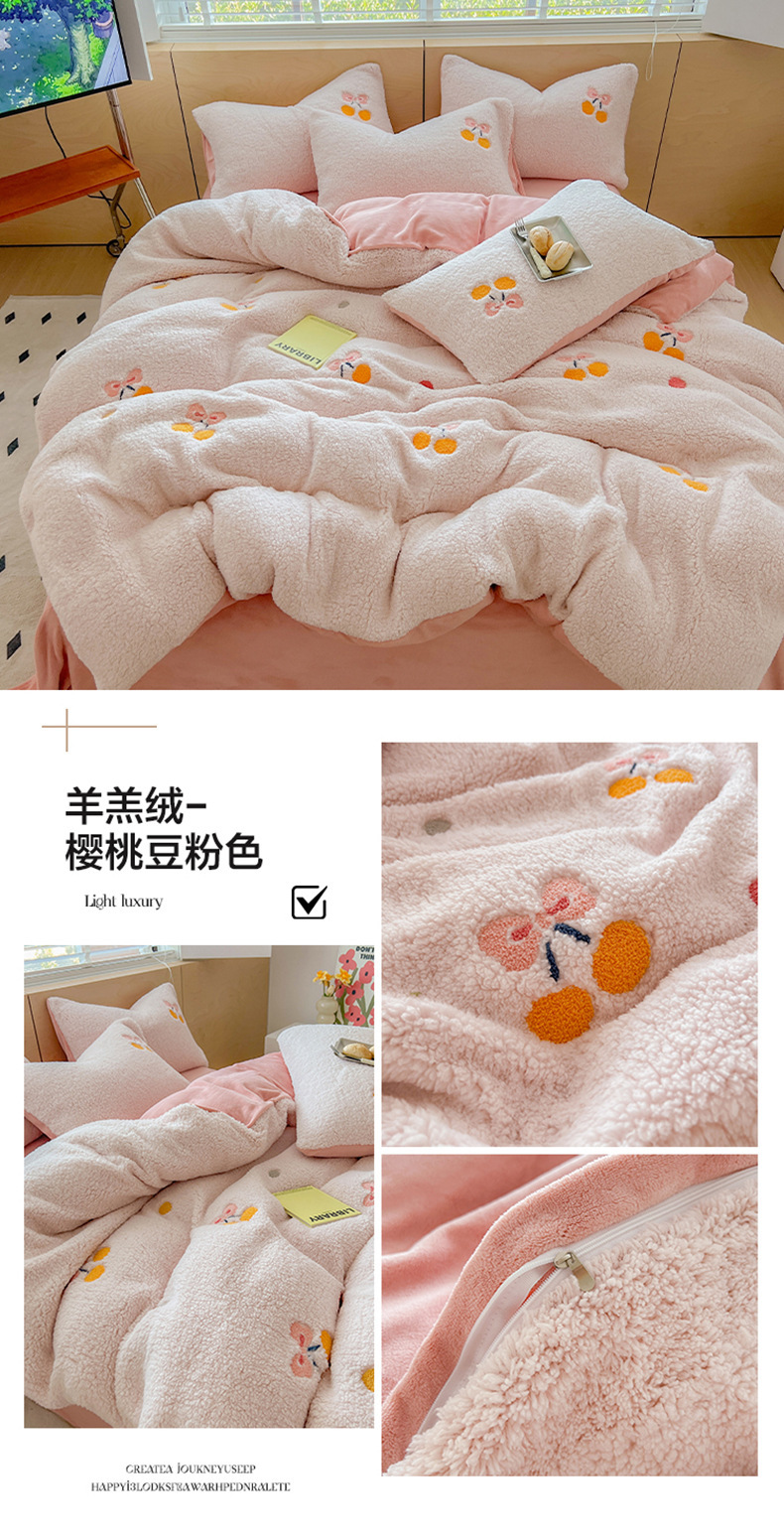 겨울 두꺼운 양고기 양털 4 조각 세트 우유 양털 침대 시트 퀼트 커버 난통 플란넬 침구 기모 퀼트 커버