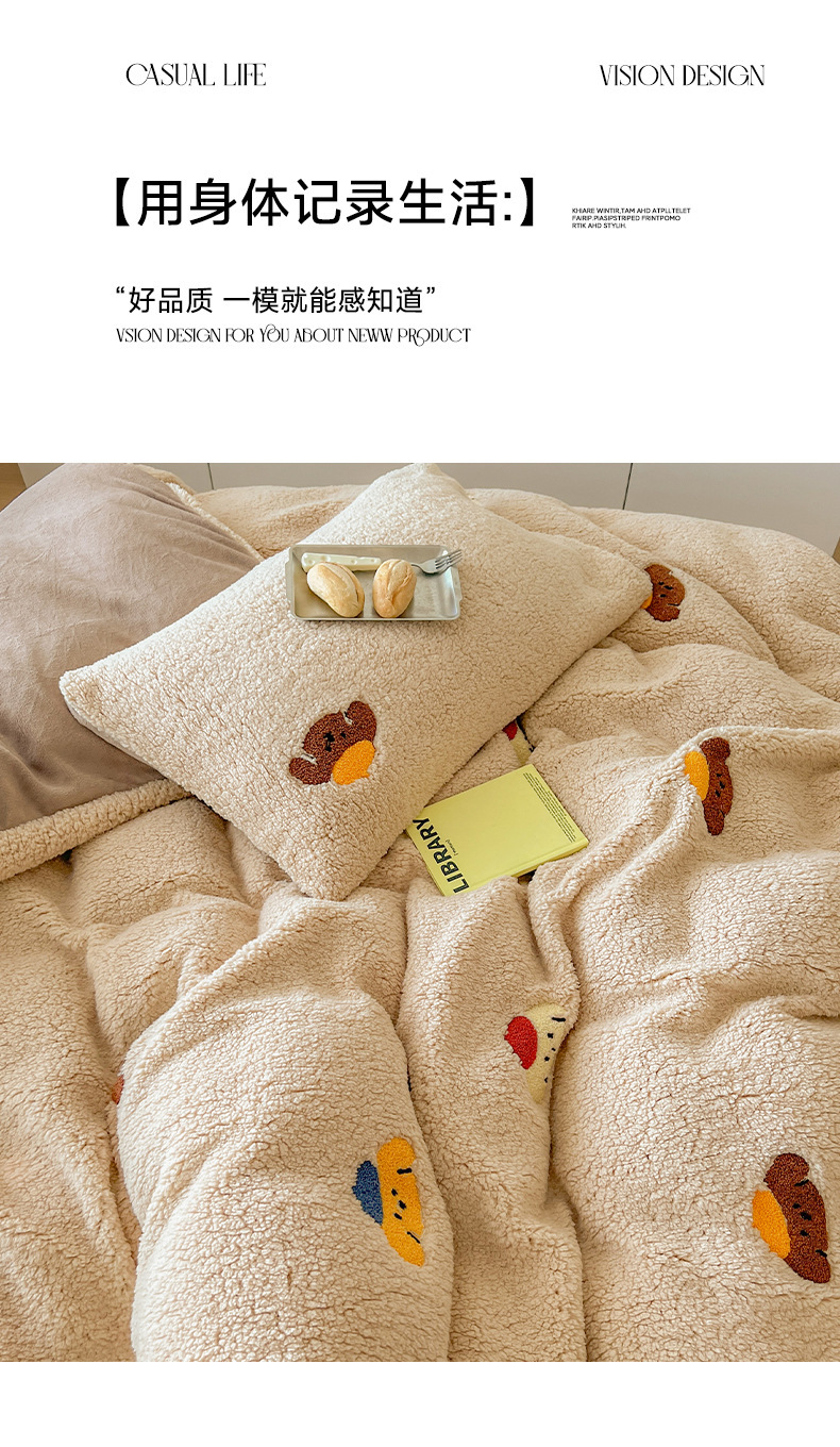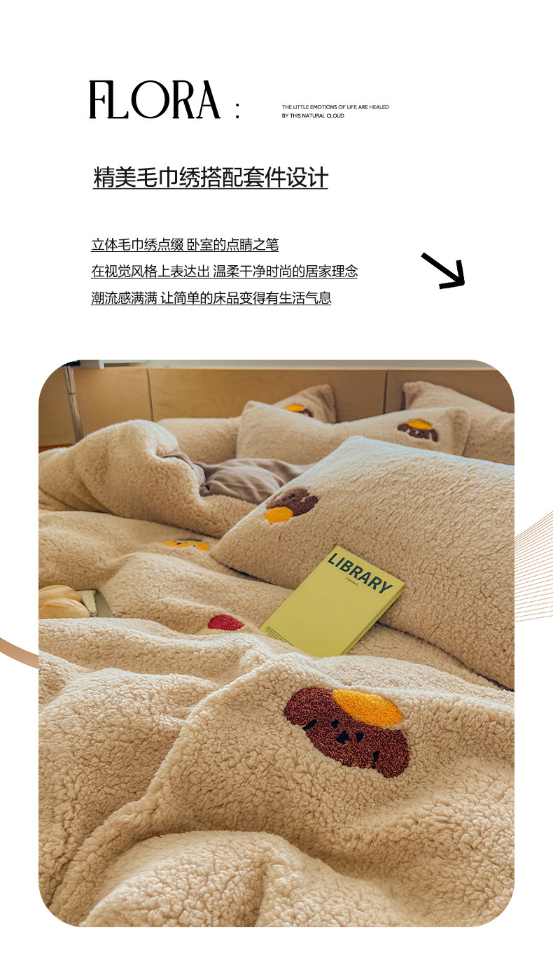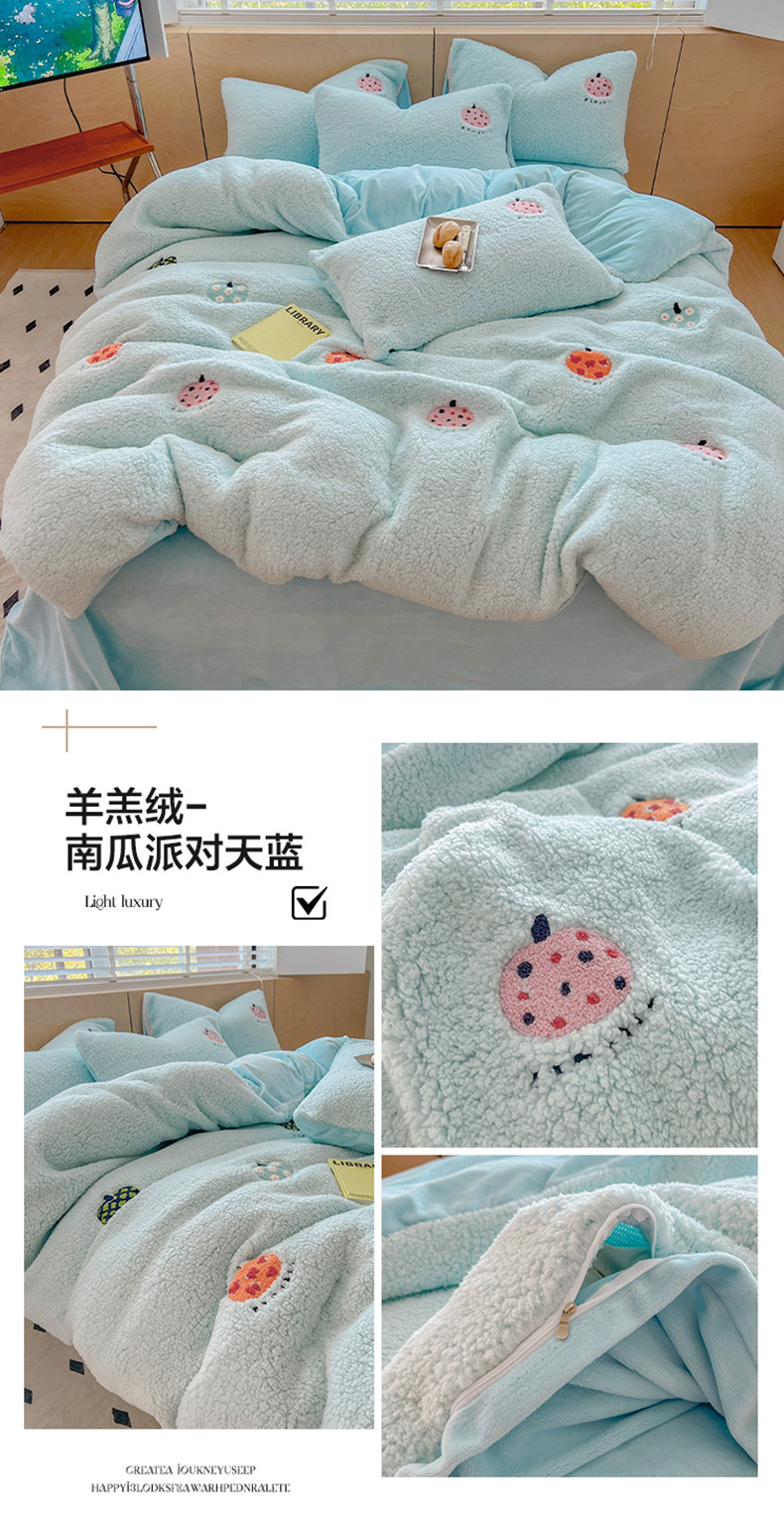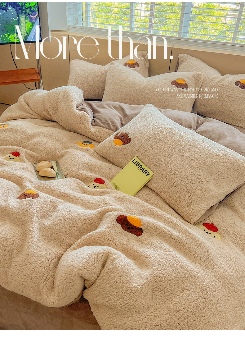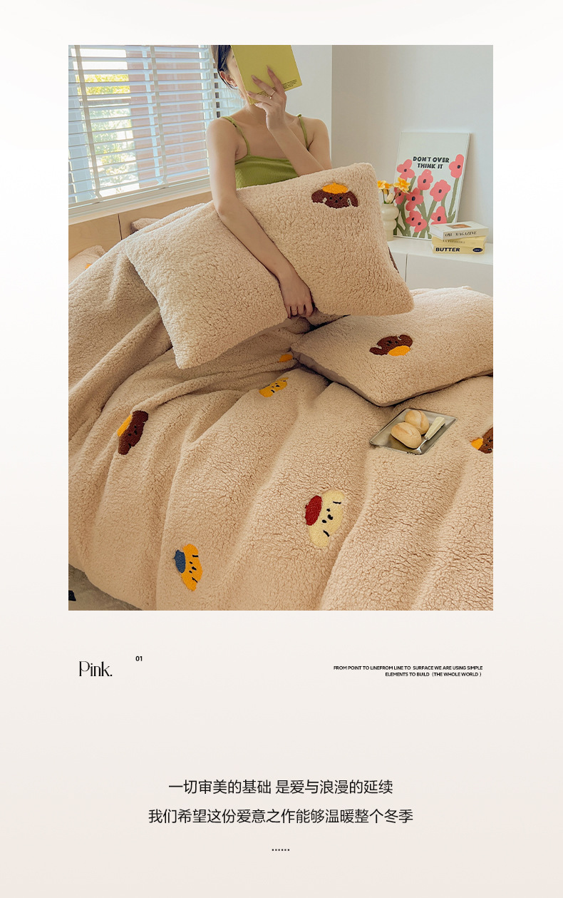겨울 두꺼운 양고기 양털 4 조각 세트 우유 양털 침대 시트 퀼트 커버 난통 플란넬 침구 기모 퀼트 커버