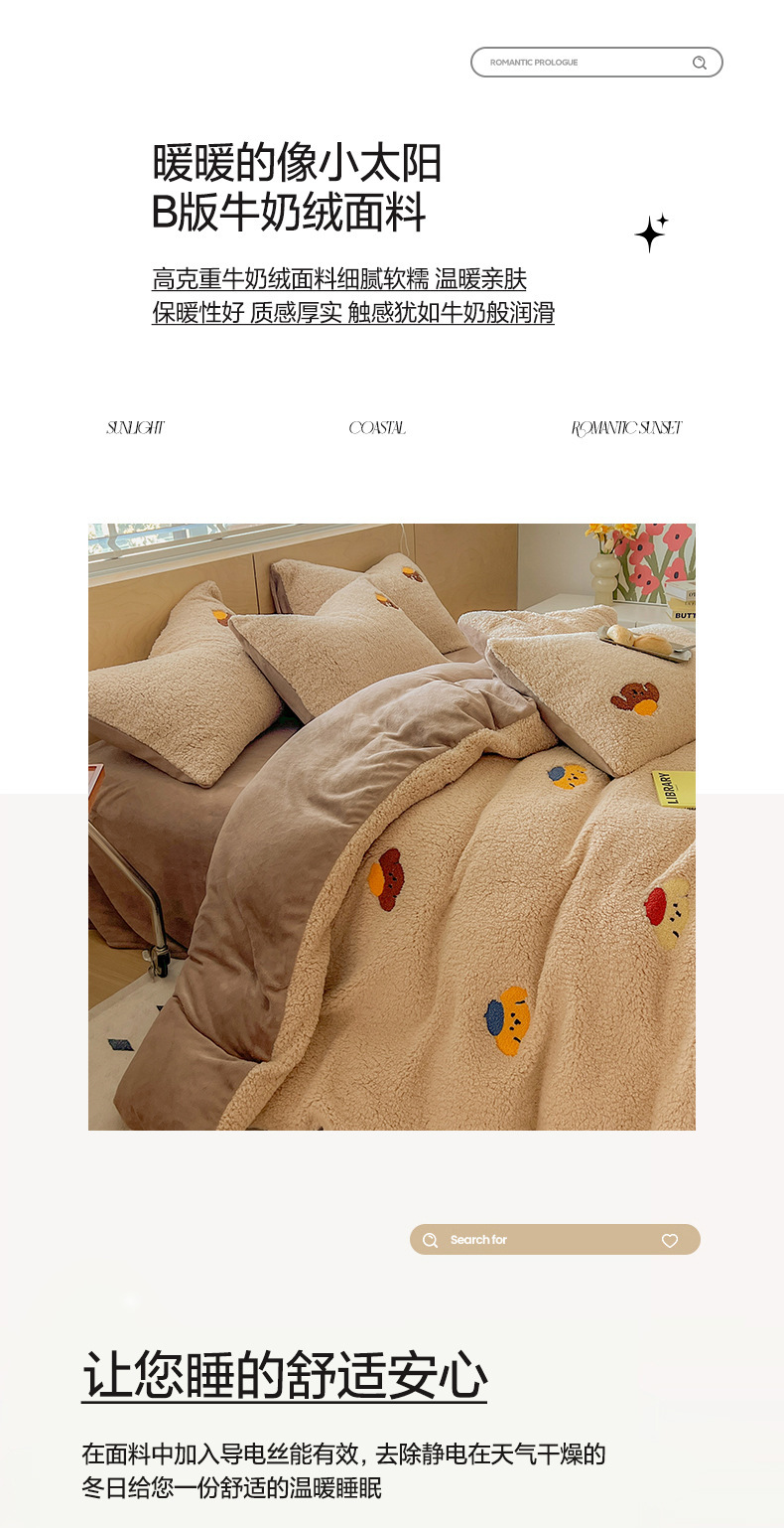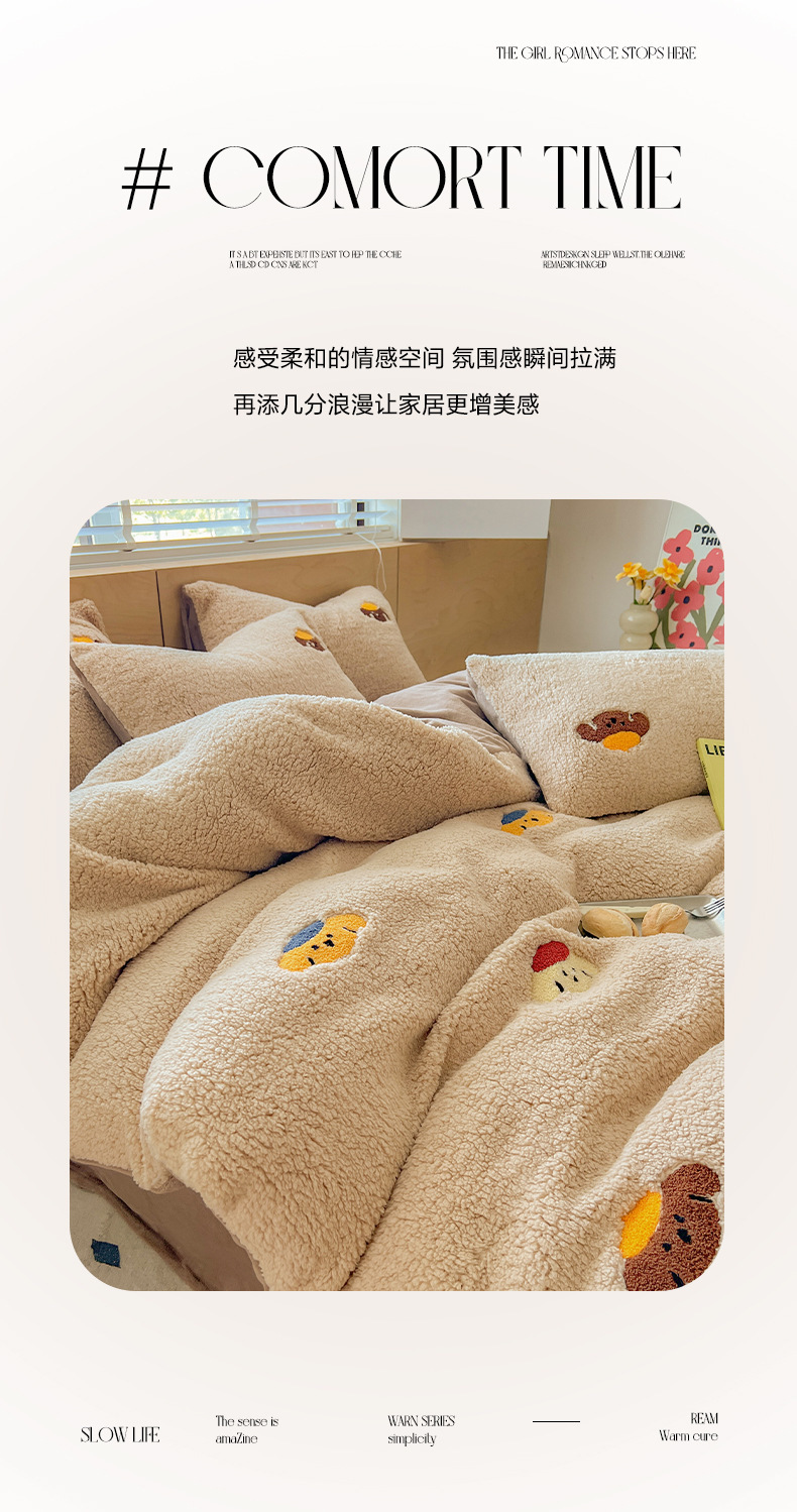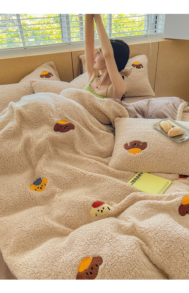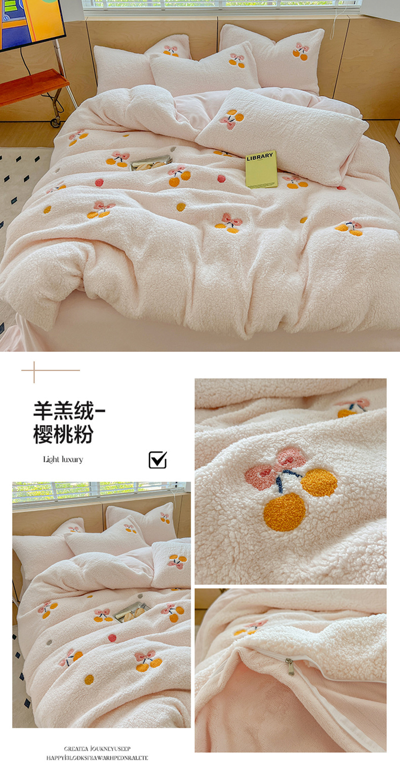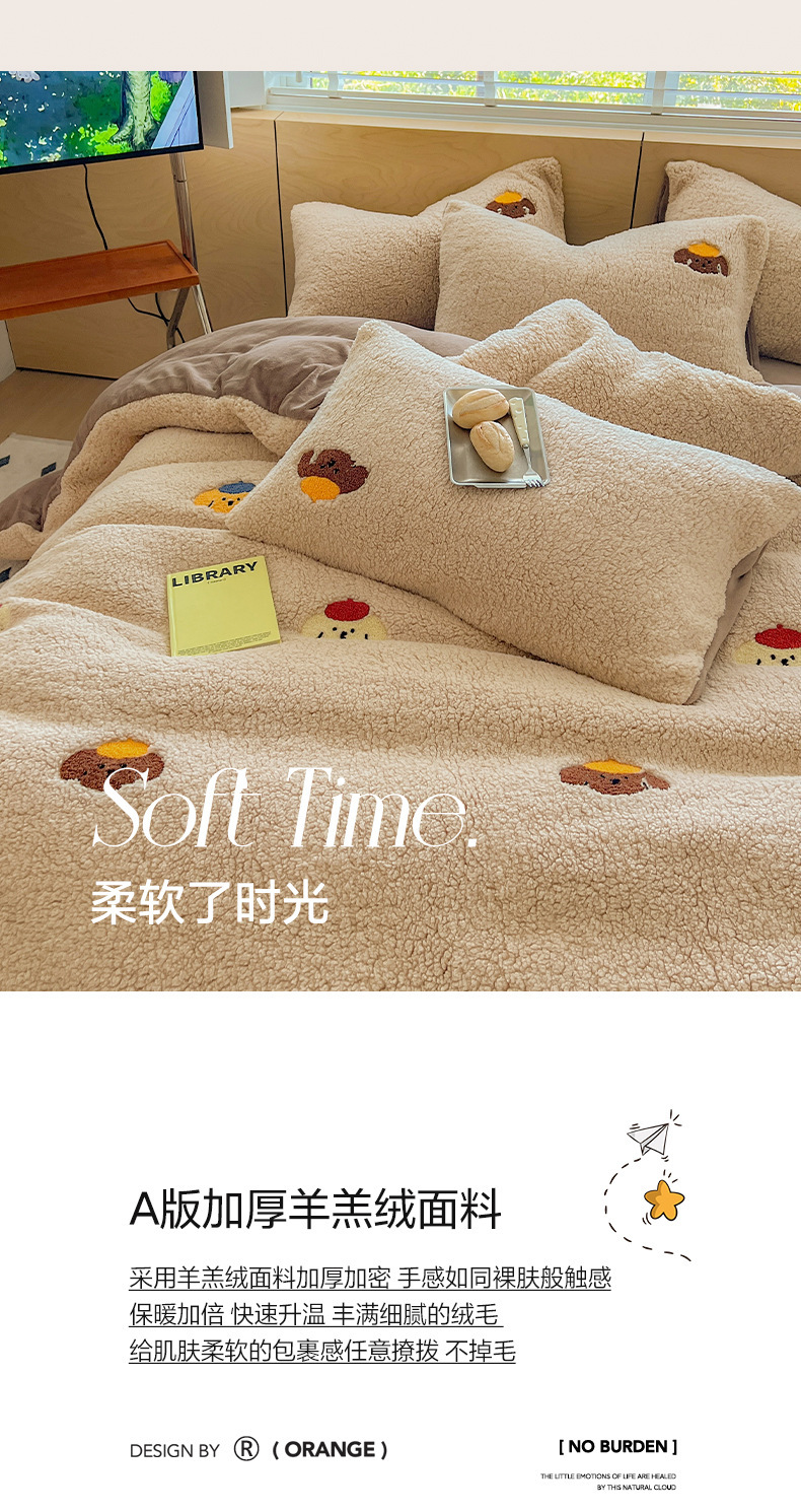 겨울 두꺼운 양고기 양털 4 조각 세트 우유 양털 침대 시트 퀼트 커버 난통 플란넬 침구 기모 퀼트 커버