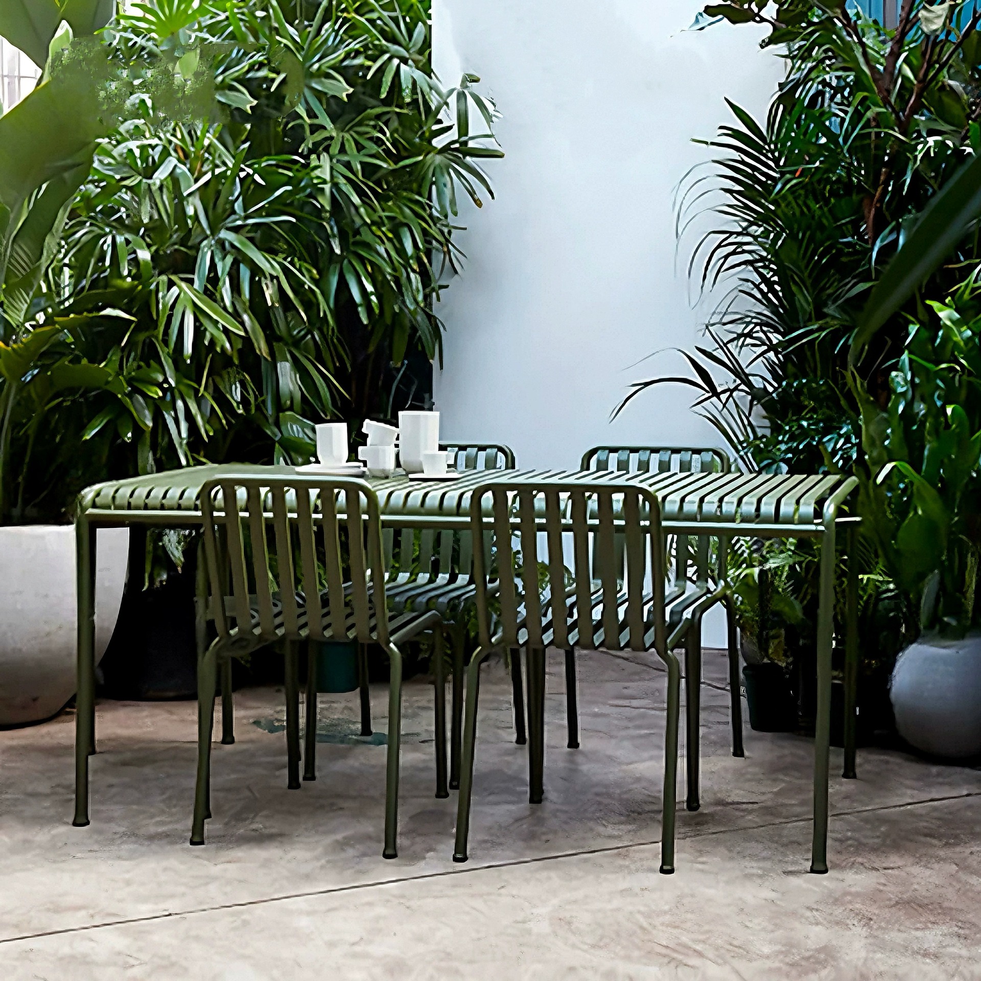 • 테이블 1개, 의자 6개(팔걸이 의자 4개 + 레저 의자 2개 + 긴 테이블 180개)