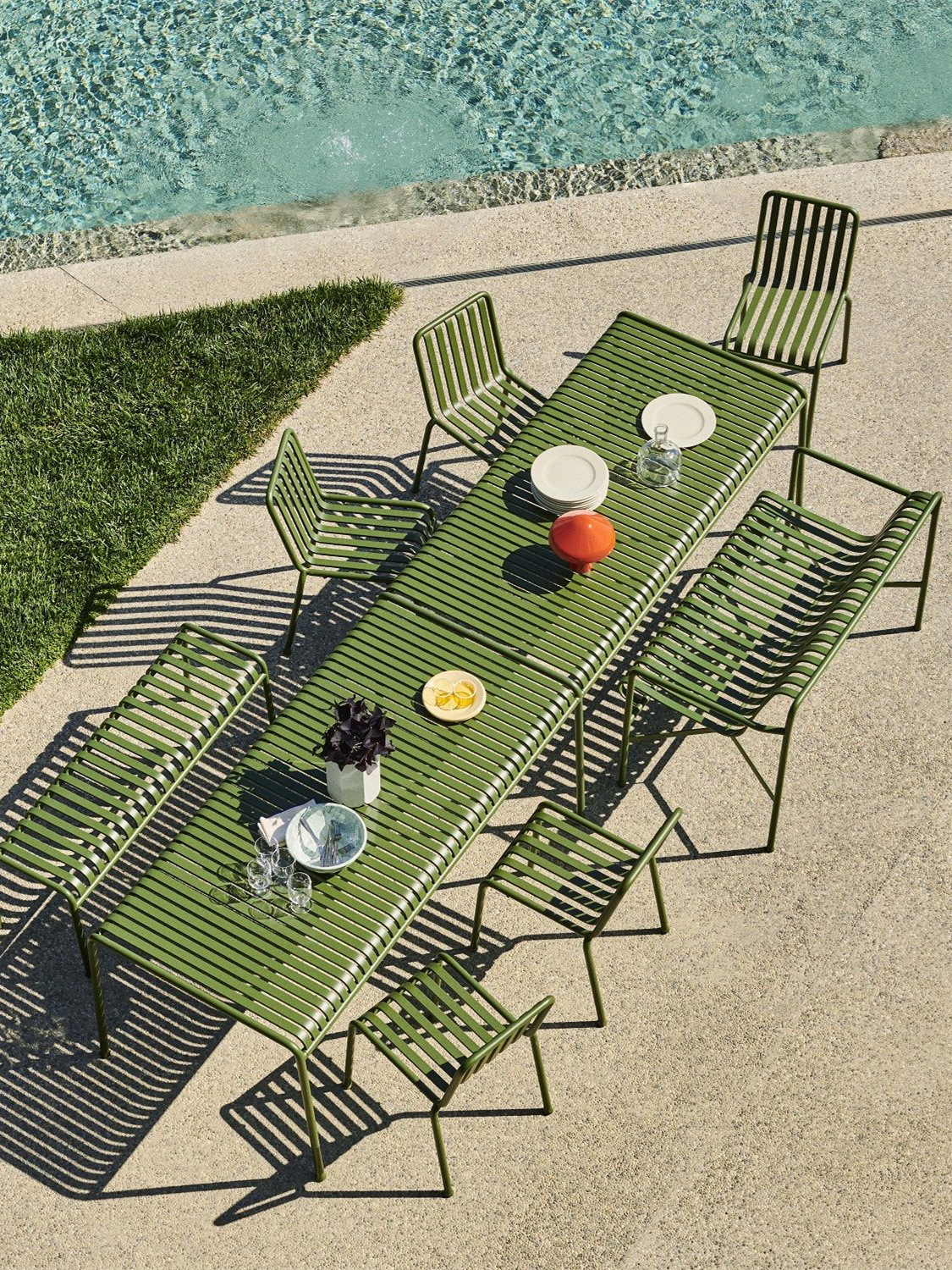 • 테이블 1개, 의자 4개 + 벤치 (팔걸이 의자 2개 + 레저 의자 2개 + 긴 테이블 160개)