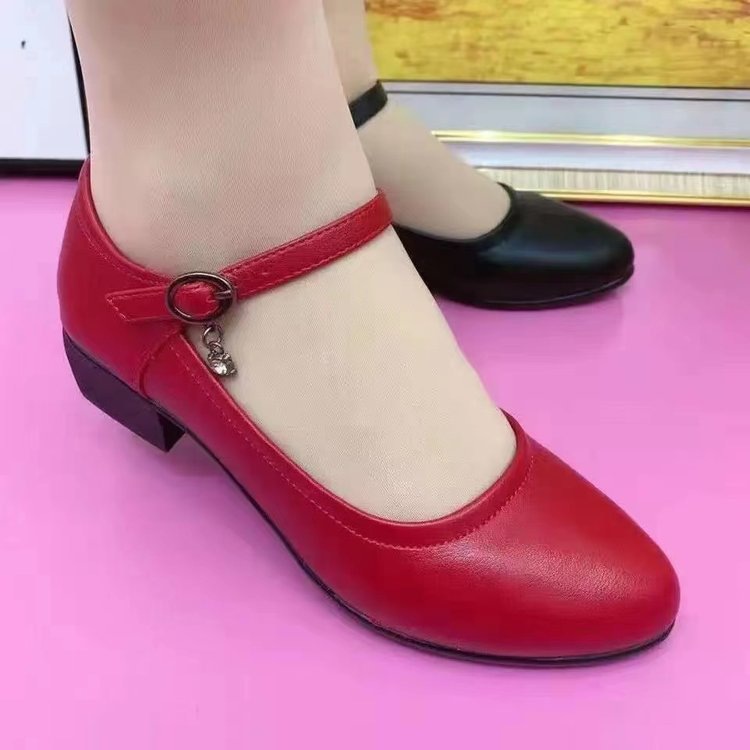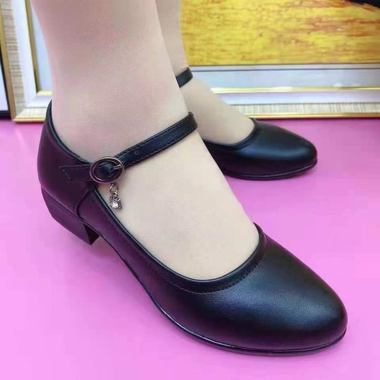 싱글 신발 여성 미들 힐 두꺼운 힐 2025 봄 새로운 중년 및 노인 어머니 신발 소프트 단독 작업 신발 광장 댄스 여성 신발스토어 가기
