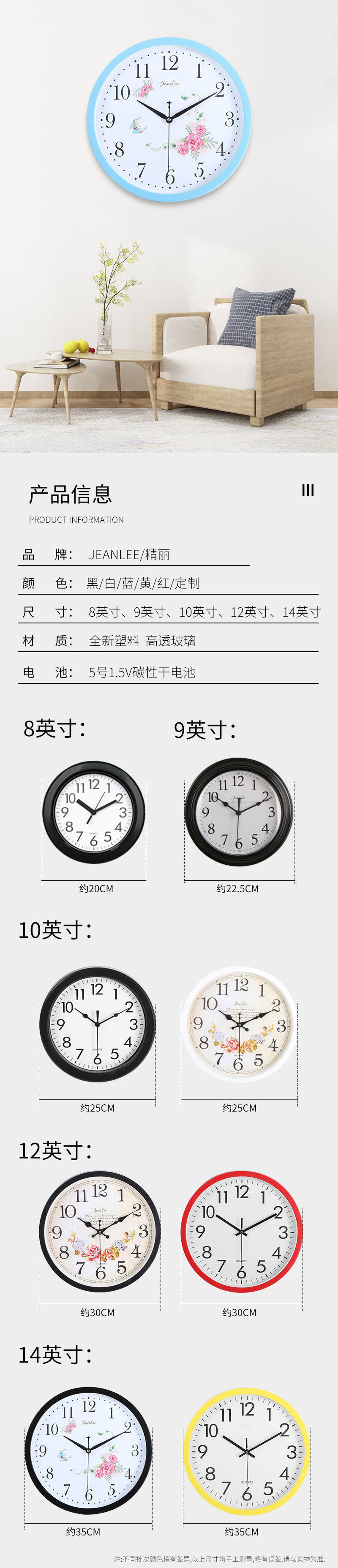 방 벽 시계 홈 벽 매달린 교실 라운드 배터리 교수형 미터 사이버 연예인 티크 토크 현대 간단한 거실 시계스토어 가기