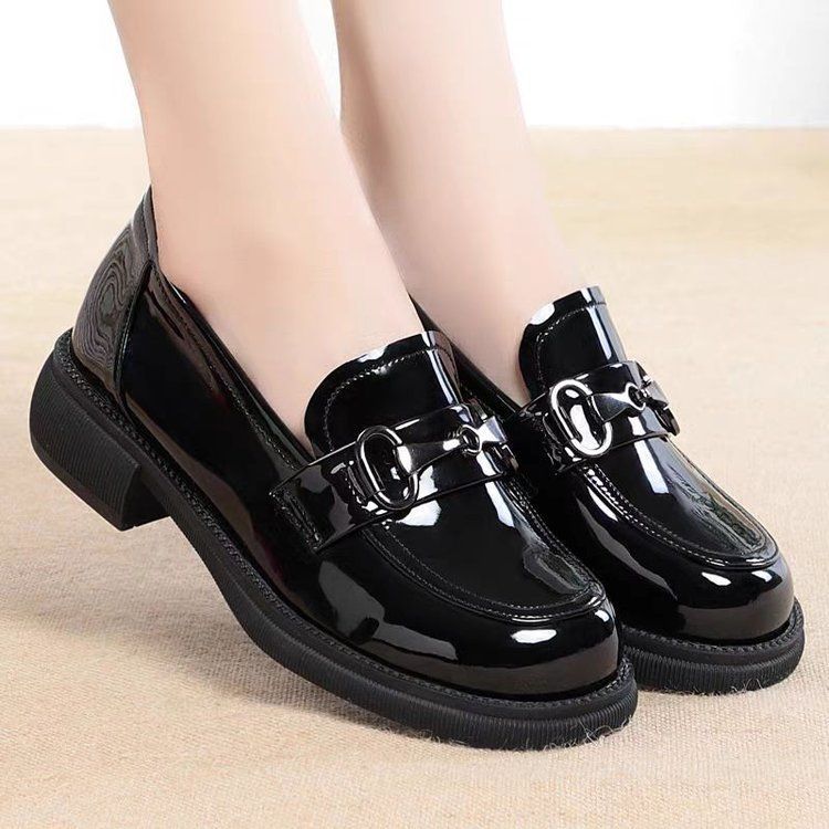 소프트 가죽 여성 싱글 신발 로우 힐 2025 새로운 봄 영국 스타일 소프트 하단 특허 가죽 신발 플랫 로퍼스토어 가기