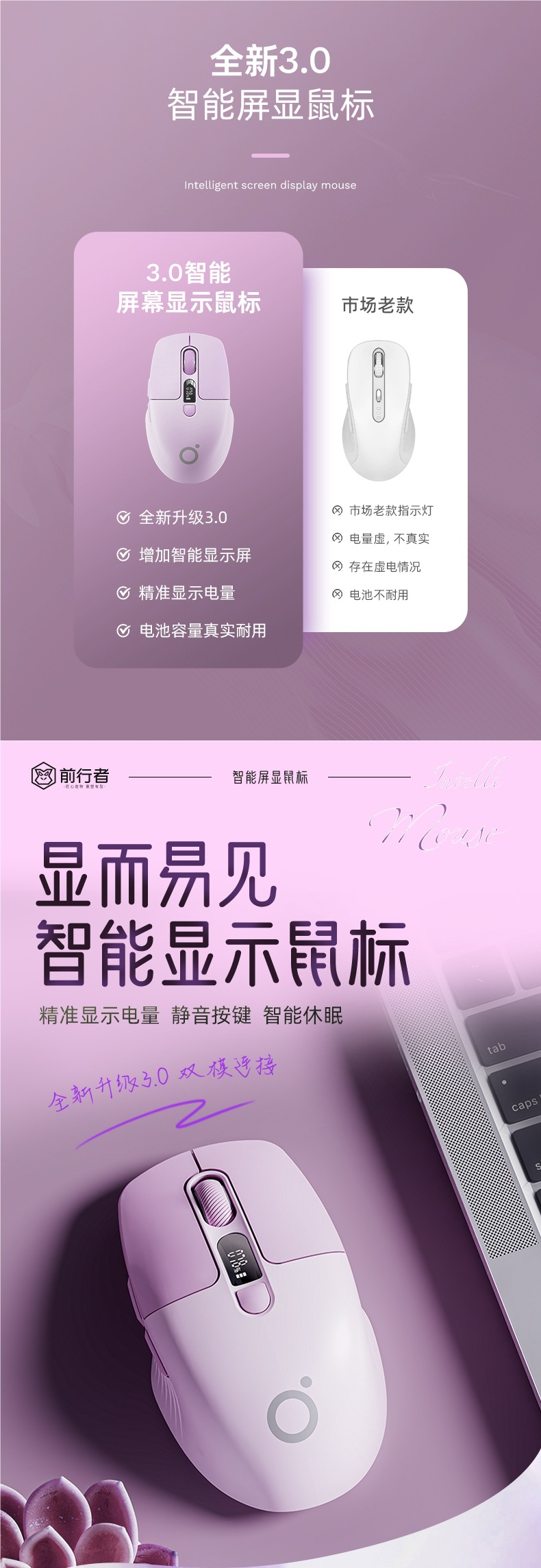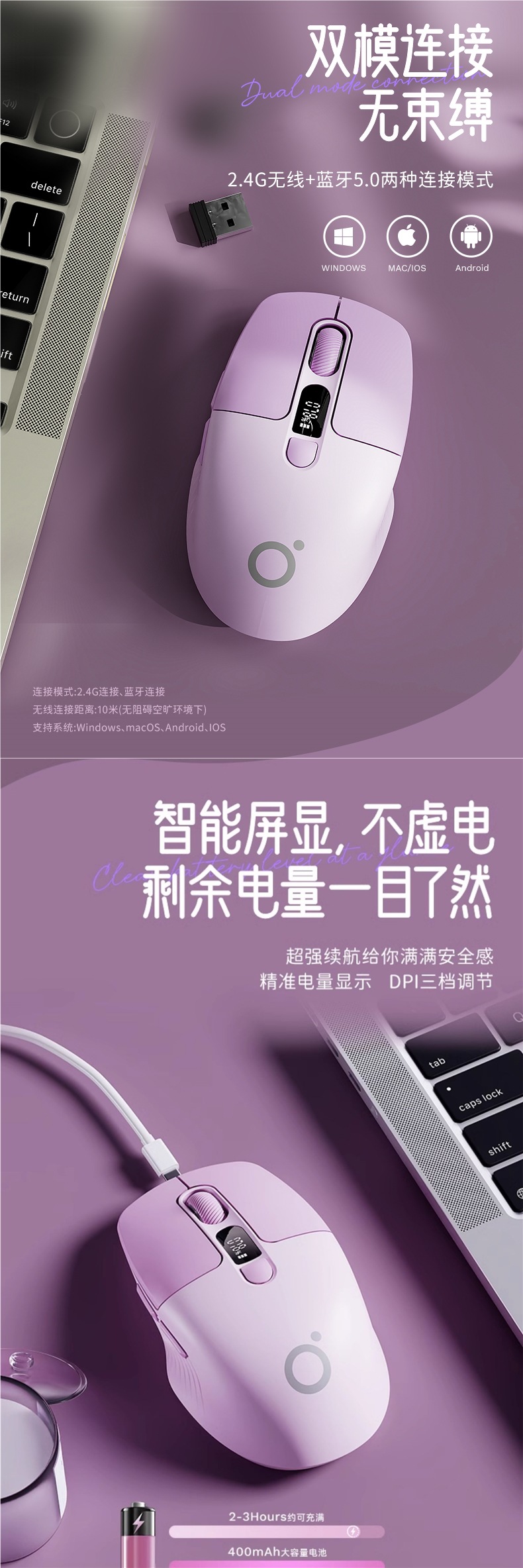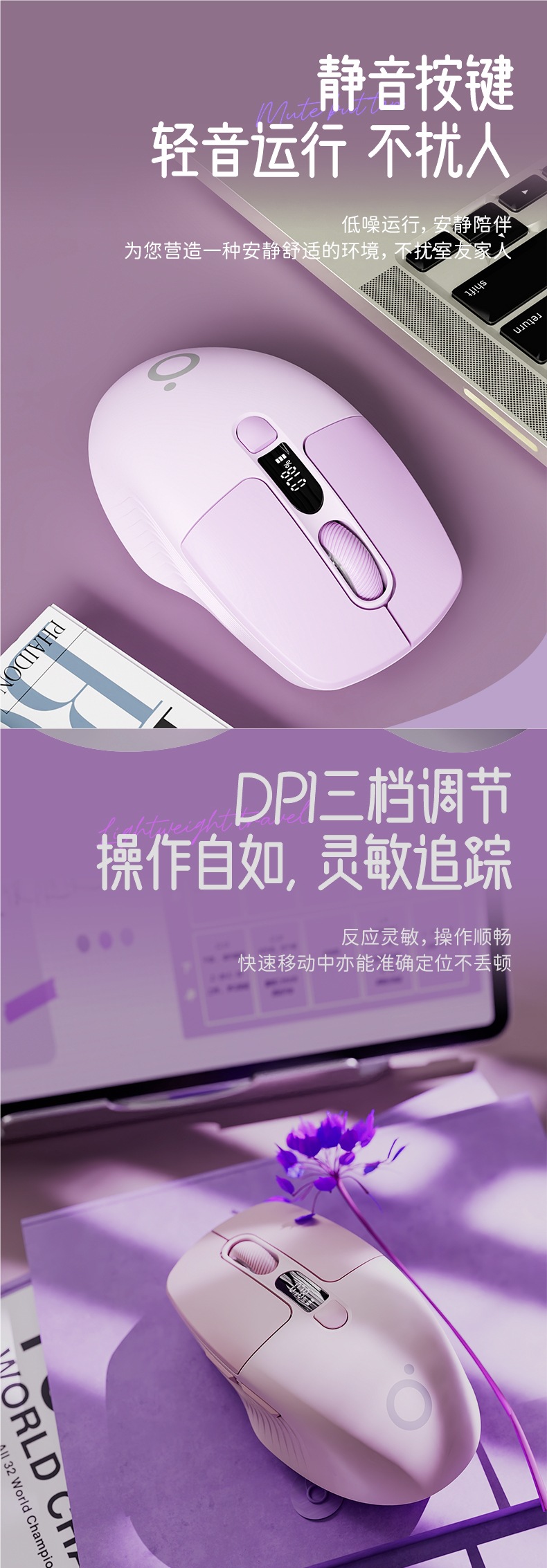 • [플래그십 에디션] 타로 퍼플 [2.4G+ 블루투스 무선 버전] 디스플레이 화면 내장 - 배터리 잔량 표시 가능 - DPI