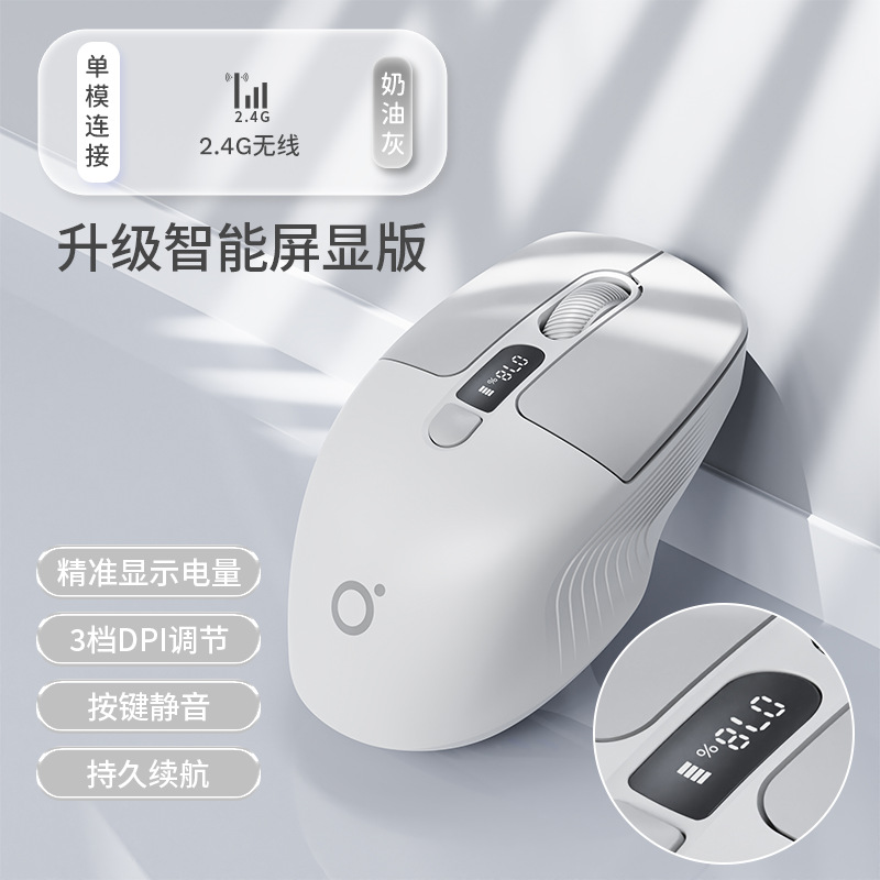 • [업그레이드 버전] 크림 그레이 [2.4G 무선 버전] 디스플레이 화면 포함 - 배터리 잔량 표시 가능 - DPI