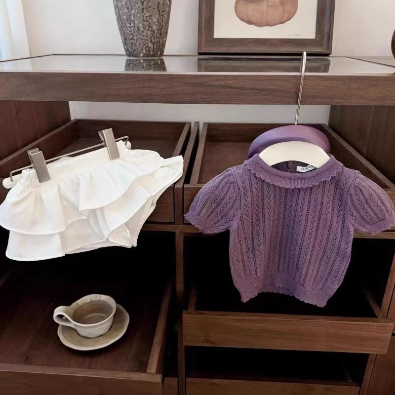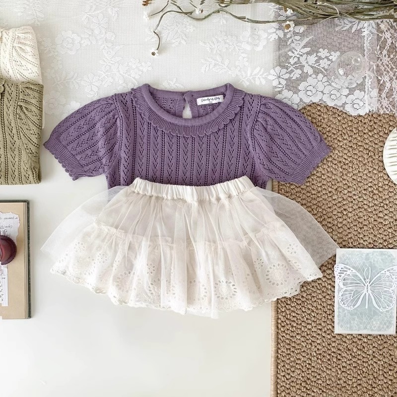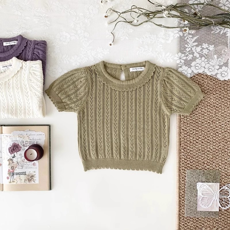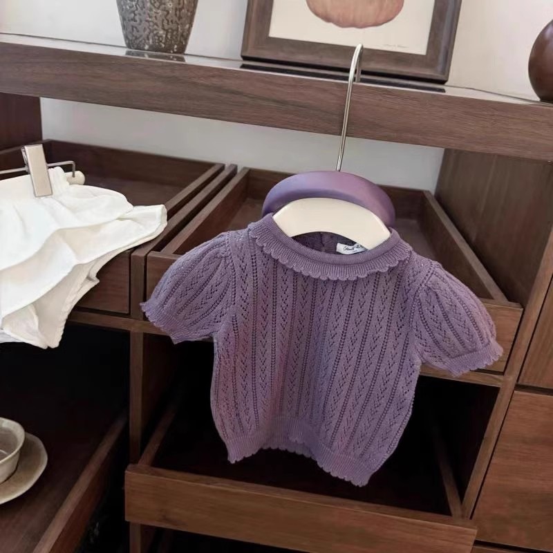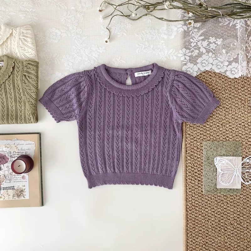 아동복 소녀 서양식 니트 탑 어린이 봄과 여름 인형 칼라 티셔츠 아기 소녀 터틀넥 할로우 니트 셔츠