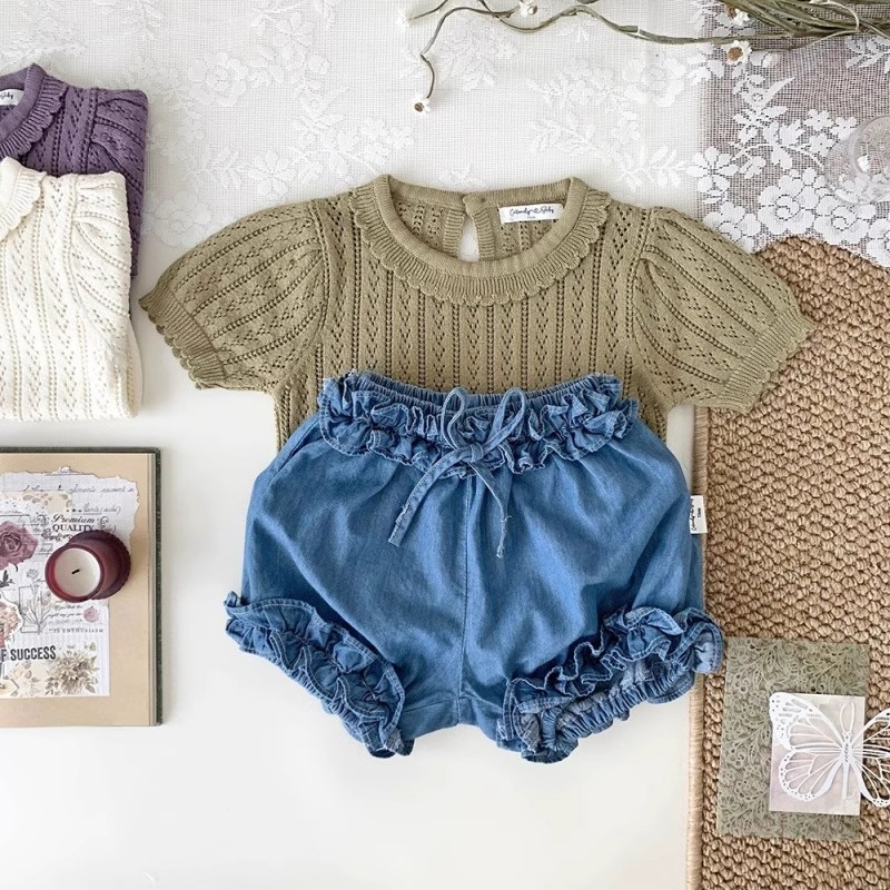 아동복 소녀 서양식 니트 탑 어린이 봄과 여름 인형 칼라 티셔츠 아기 소녀 터틀넥 할로우 니트 셔츠스토어 가기