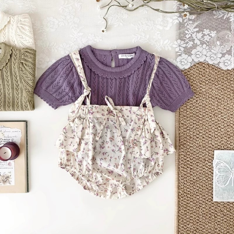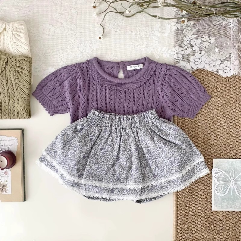 • 보라색 니트 반소매 탑