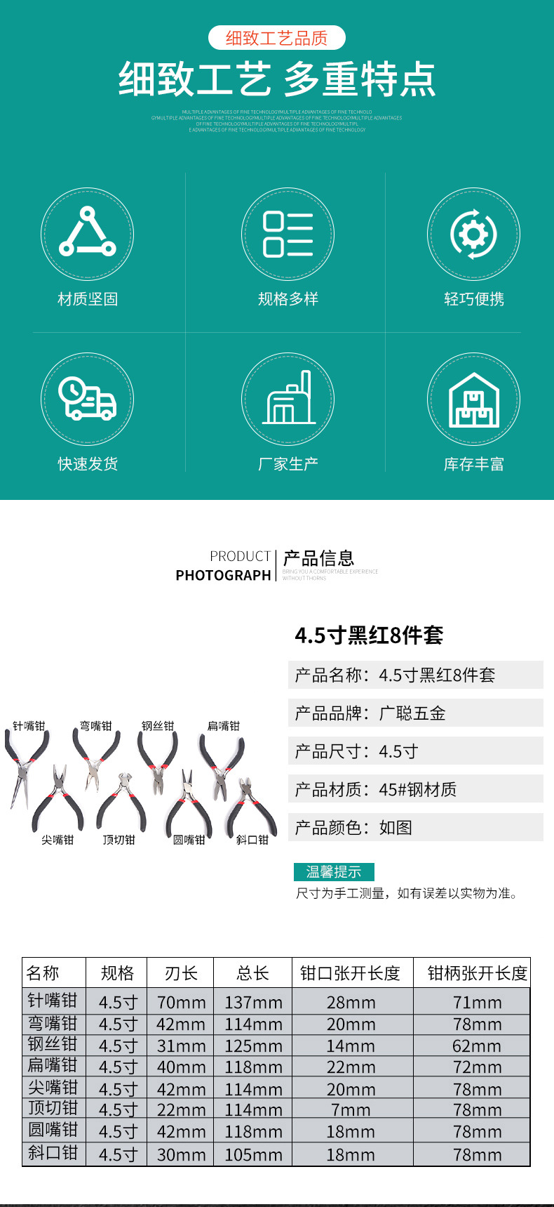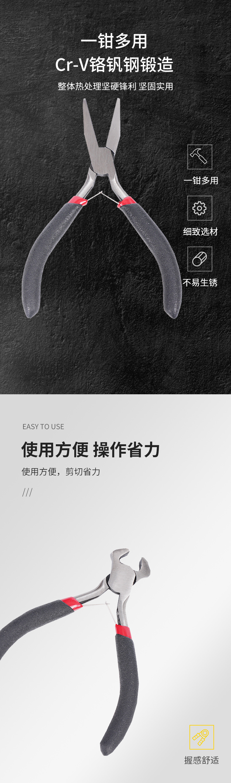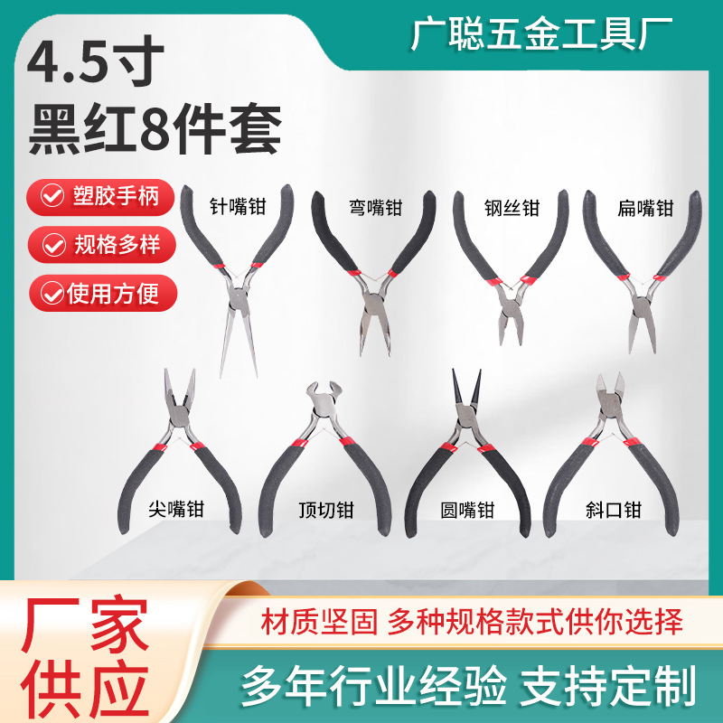 공장 OEM 쥬얼리 펜치 빨간색과 검정색 8피스 탄소강 펜치 헤드 DIY 수제 도구 펜치 다기능 펜치스토어 가기