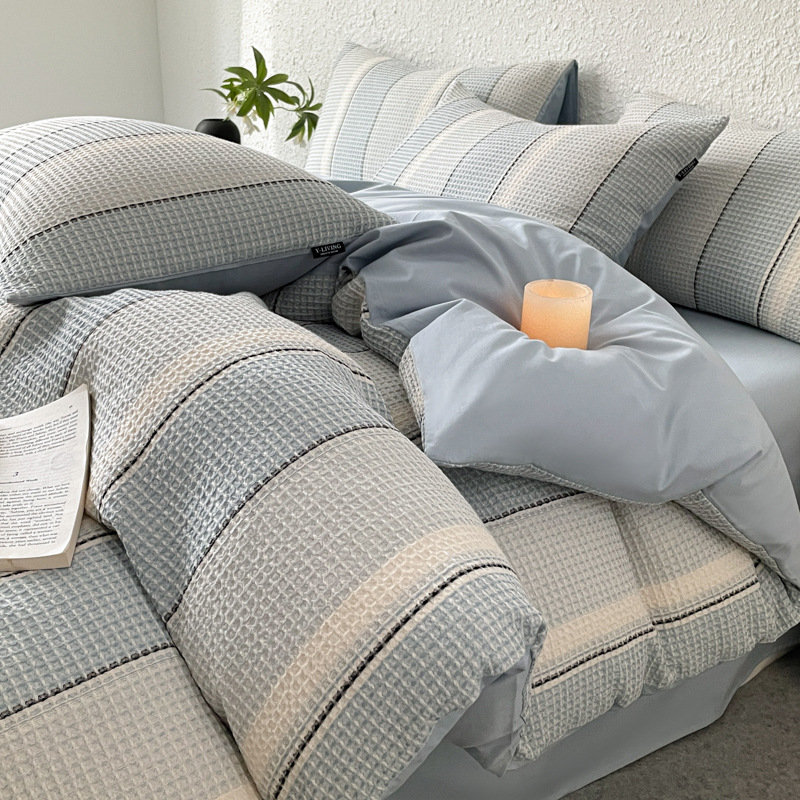 2025 새로운 면사 염색 자카드 와플 4 피스 코튼 퀼트 커버 시트 북유럽 스타일의 고급 침구