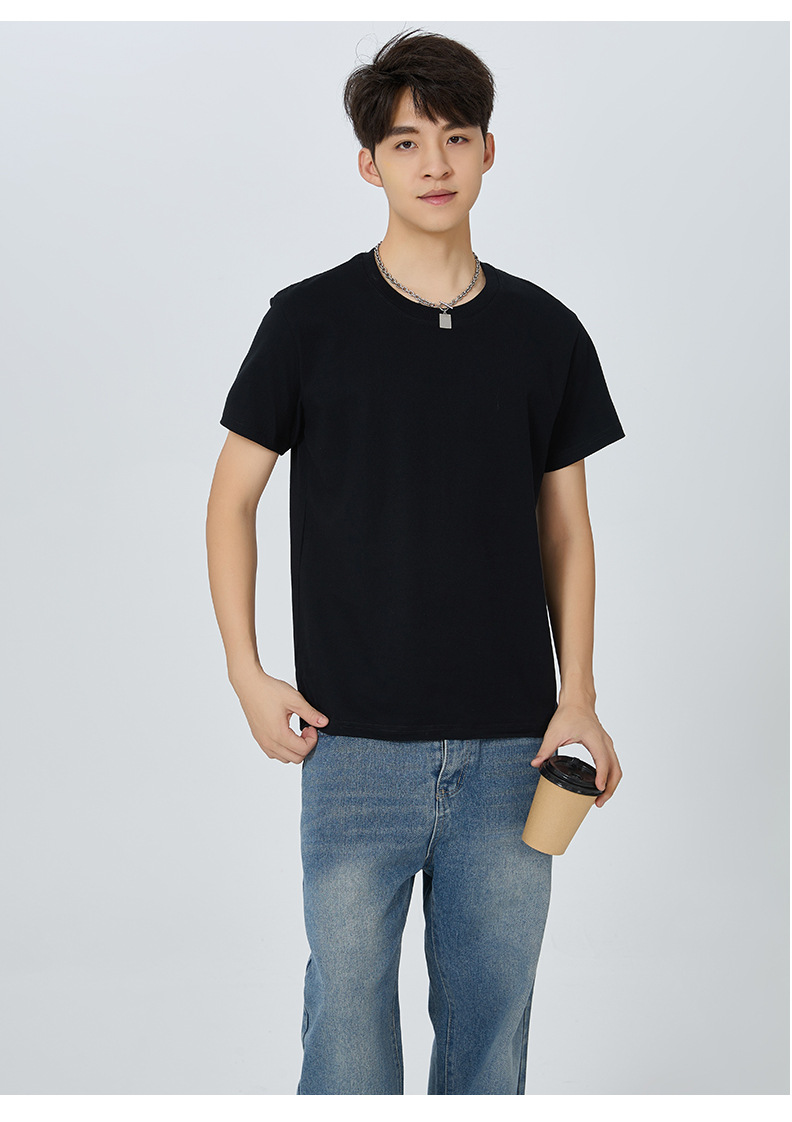 여름 남성용 헤비 코튼 반팔 티셔츠 남성용 루즈 솔리드 컬러베이스 셔츠 트렌디 브랜드 티셔츠 화이트 의류스토어 가기