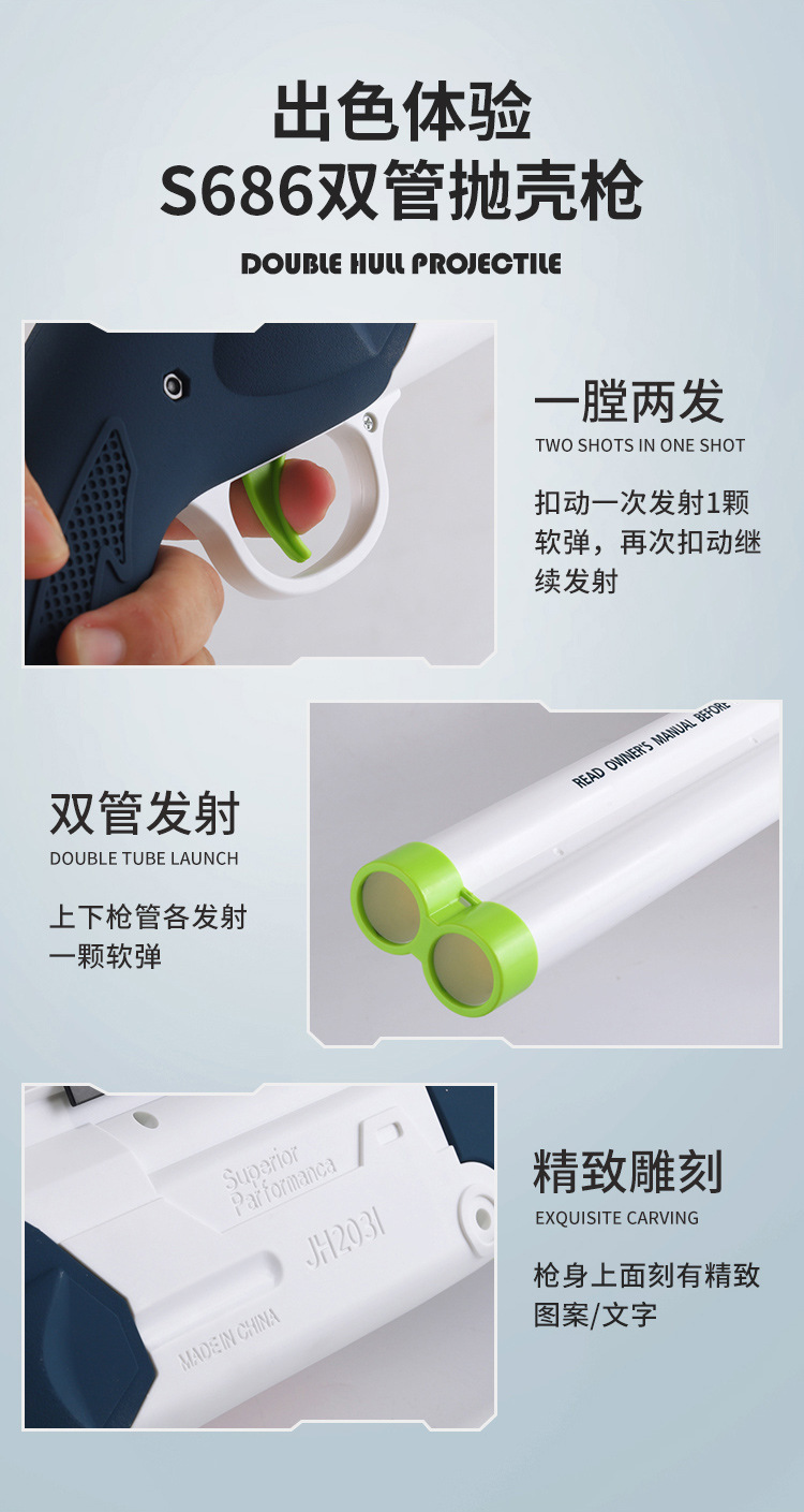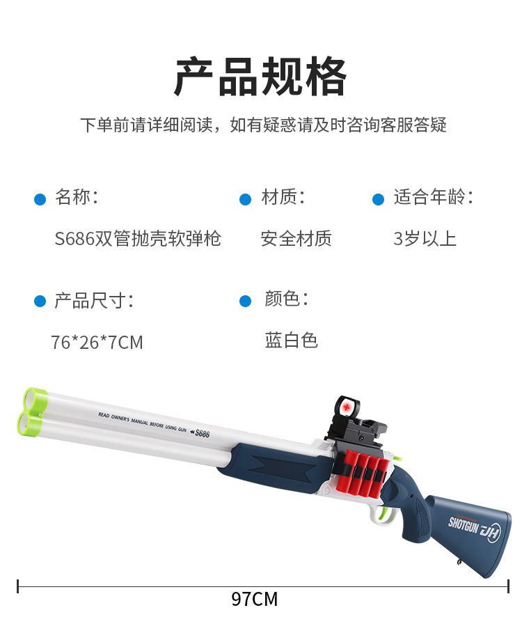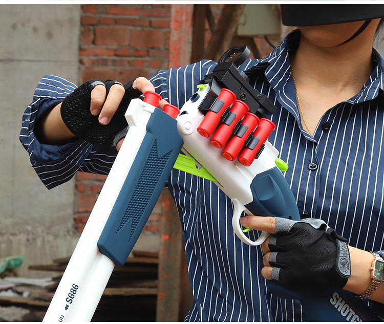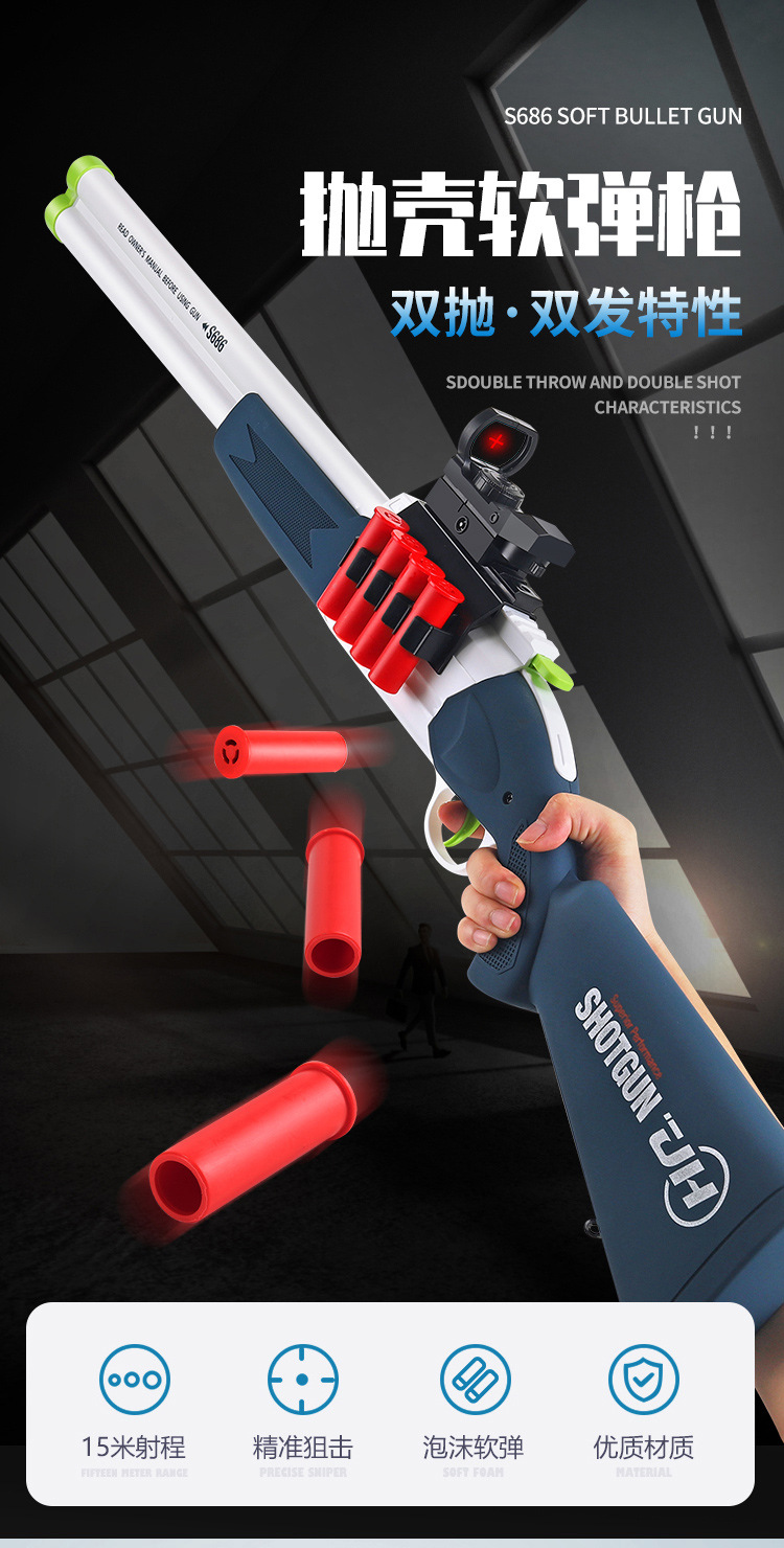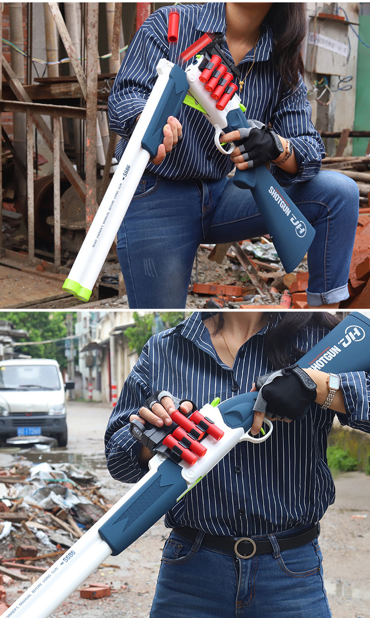 Meizhi 이중 튜브 분무기 s686 장난감 소프트 총알 수동 던지기 쉘 접이식 어린이 장난감 총 도매 산탄 총스토어 가기