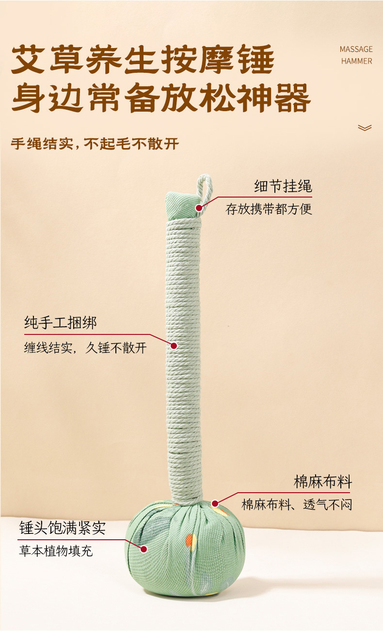 ✅쑥 망치 diy 수제 moxibustion stick 자오선 마사지 두드리는 망치 손을 들고 moxibustion 망치 손 선물 건강 망치스토어 가기