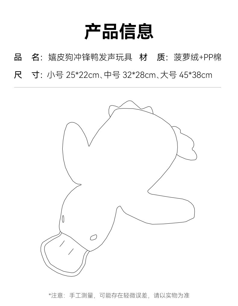 单个产品尺寸:冲锋鸭:大号45*38cm