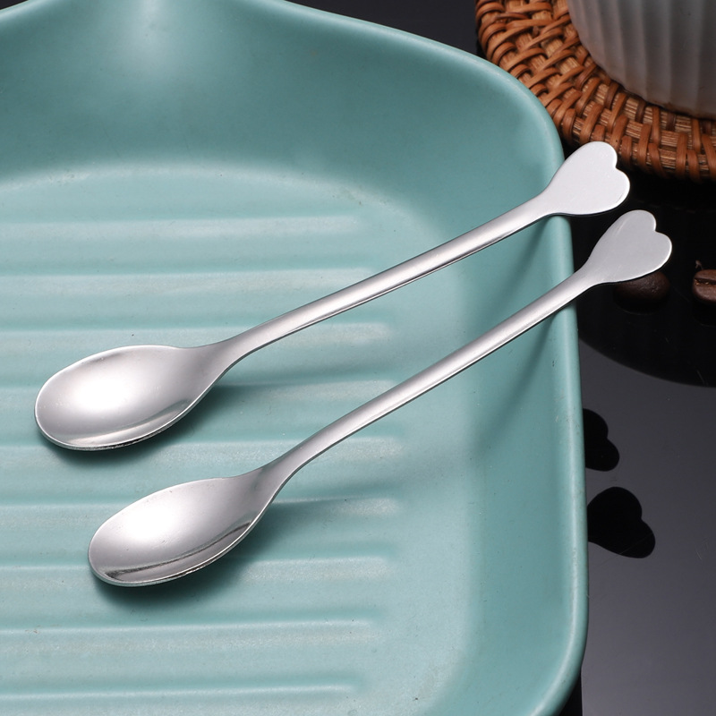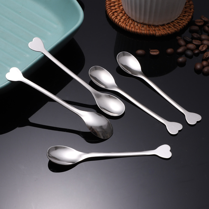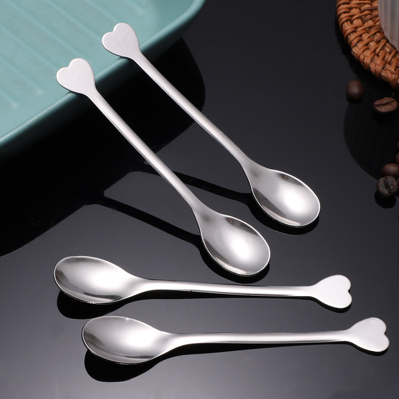 스테인레스 스틸 커피 스푼 창조적 인 디저트 스푼 혼합 숟가락 작은 둥근 숟가락 작은 소금 숟가락 차 숟가락 하트 모양의 손잡이