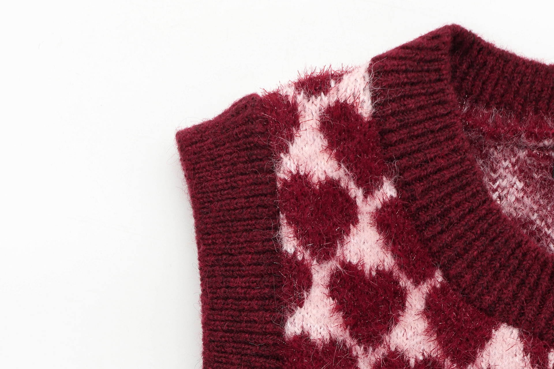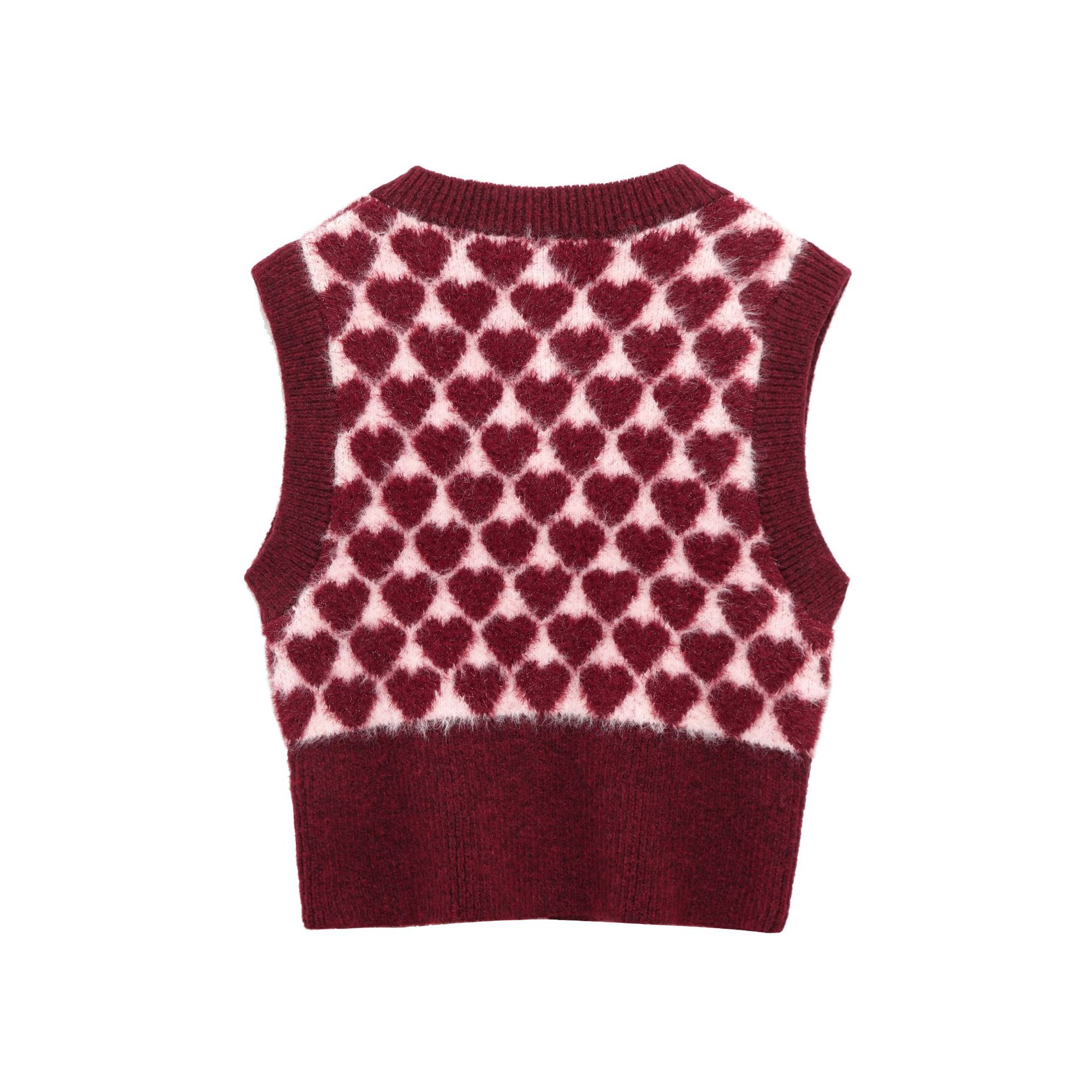 TAOP & ZA 봄 새로운 자카드 유럽과 미국의 사랑 패턴 폭발 니트 짧은 조끼 크루 넥 조커 여성복스토어 가기