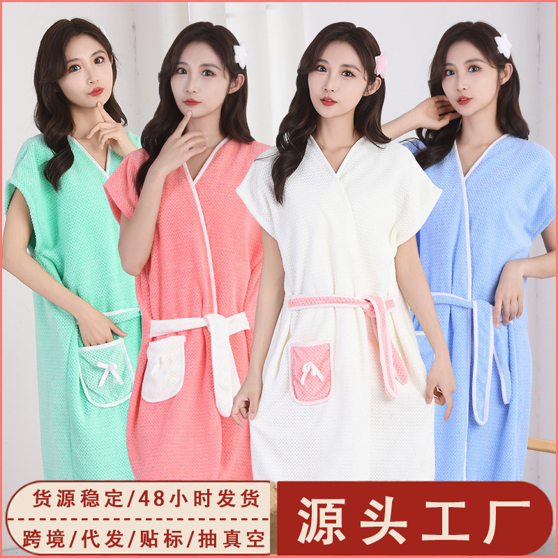 새로운 파인애플 페이드 두꺼운 레이스 업 목욕 가운 목욕 가운 반팔 여성 기숙사 빠른 건조 목욕 타월이 부드러워지지 않습니다