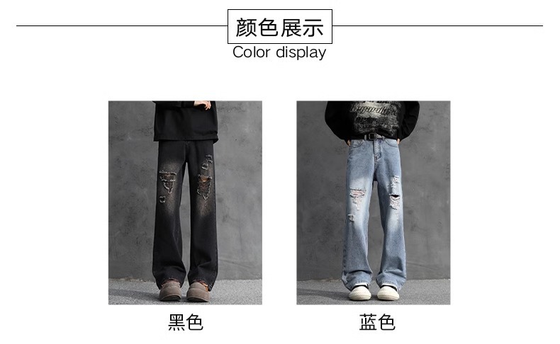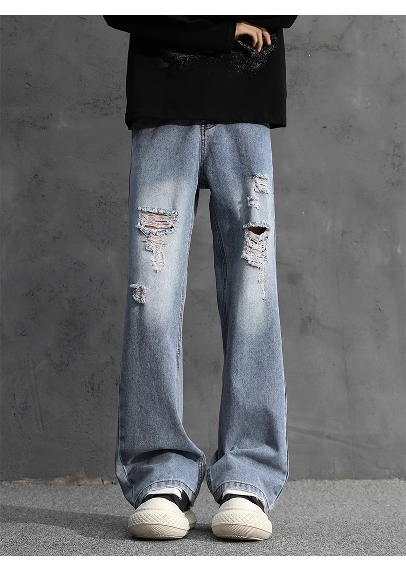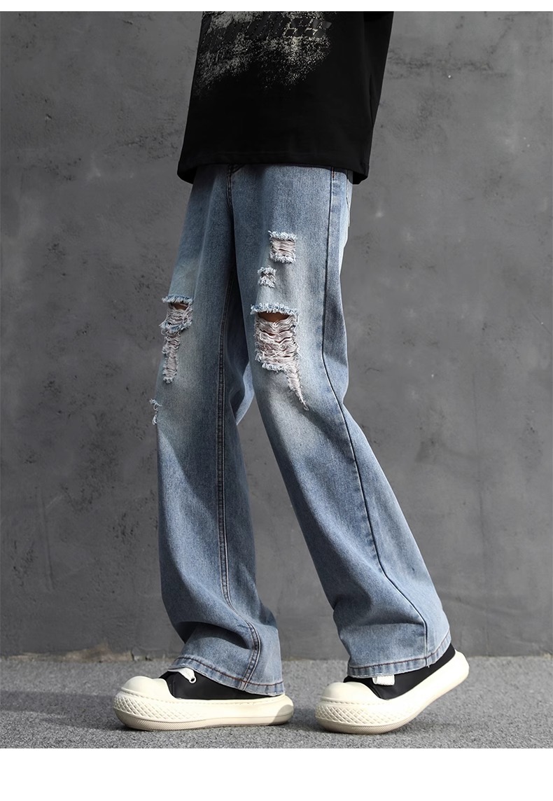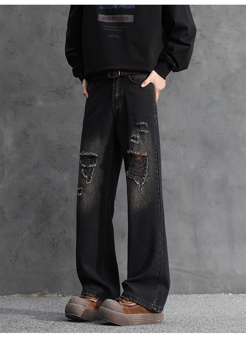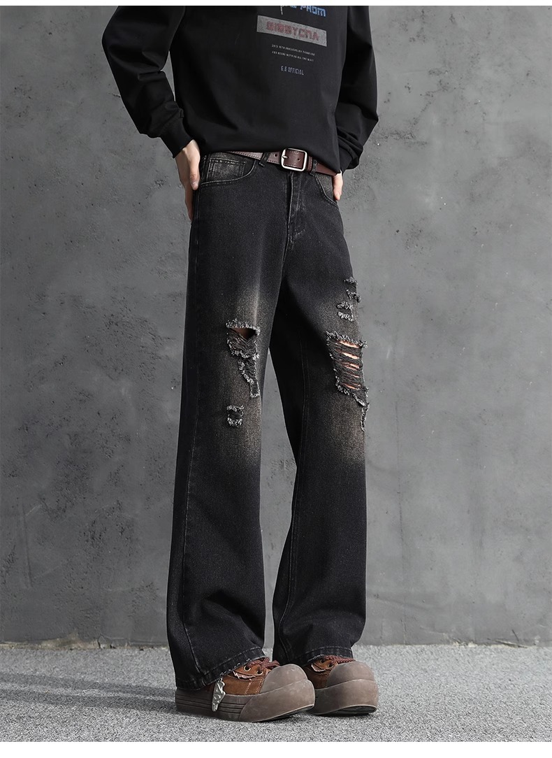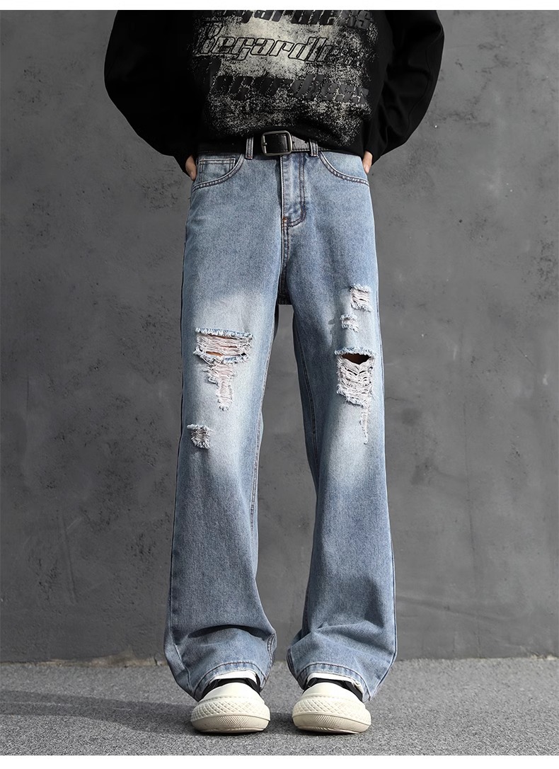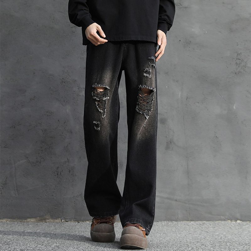 NASA American Retro Ripped 청바지 남성 바지 봄과 가을 느슨한 스트레이트 올드 하이 스트리트 캐주얼 바지