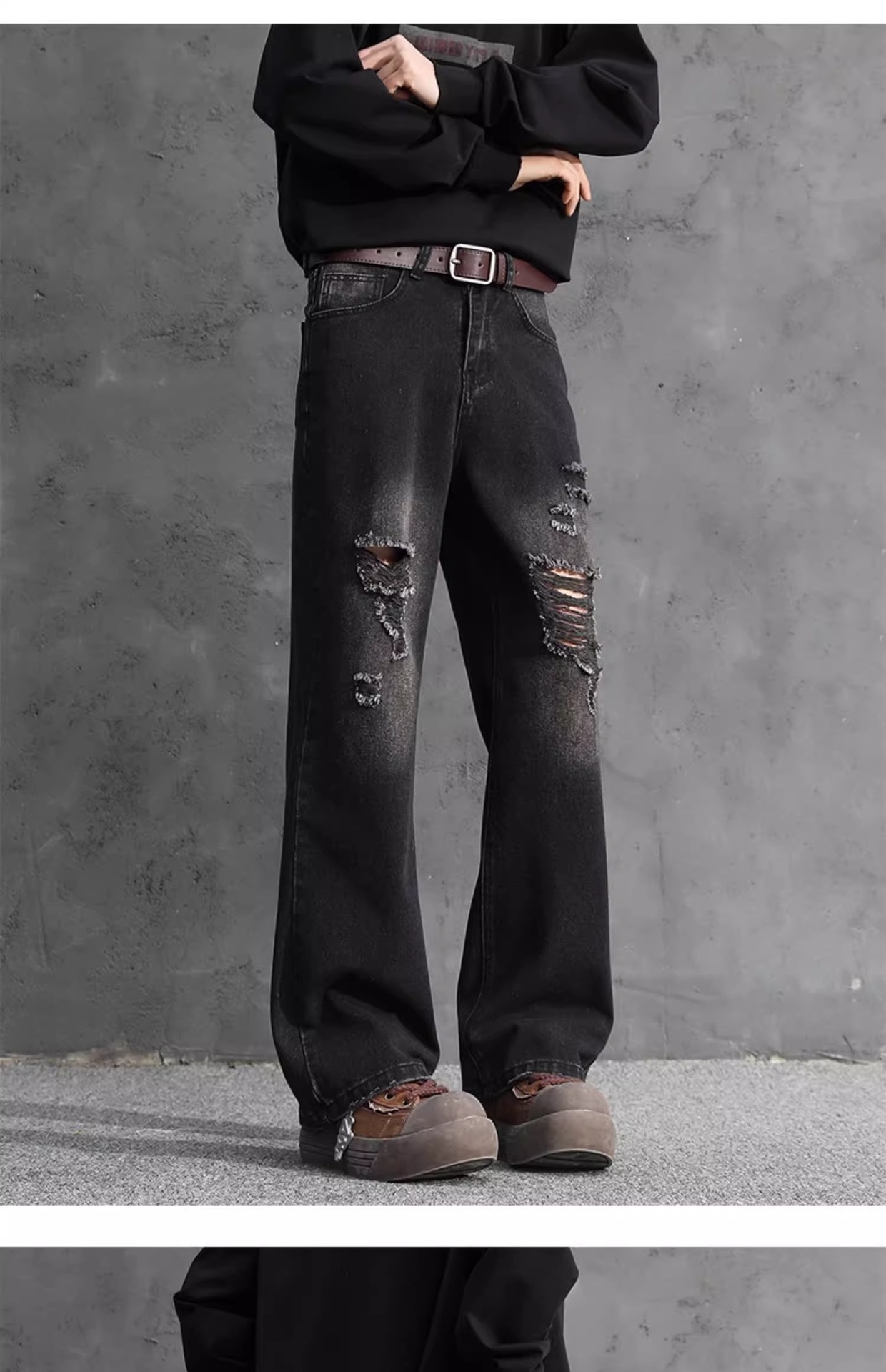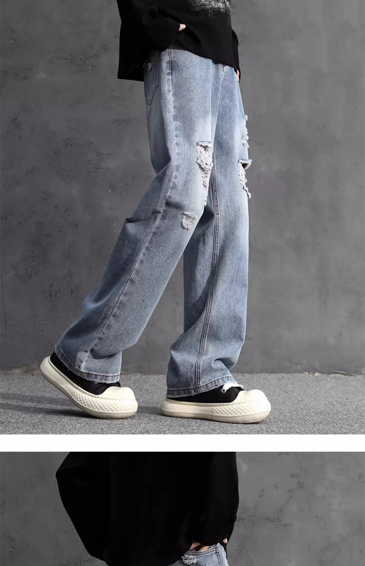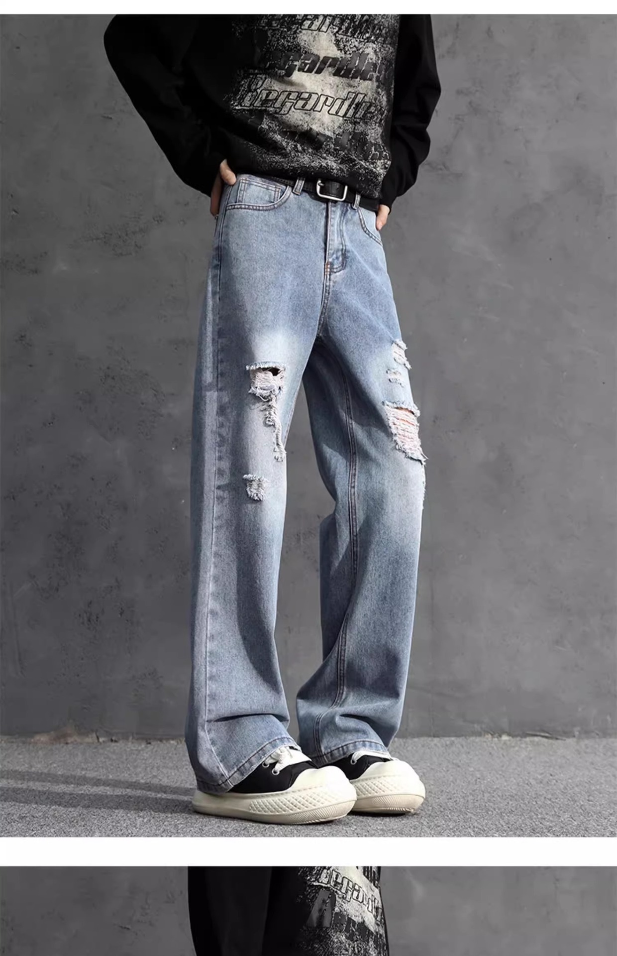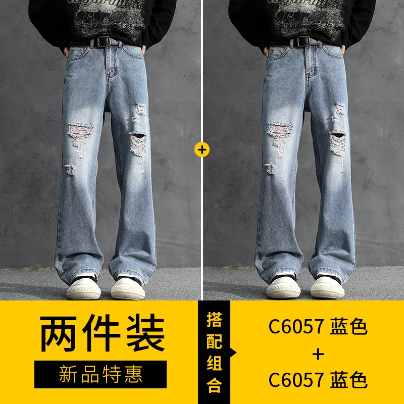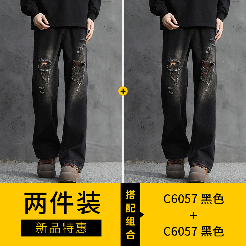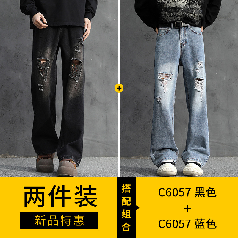 NASA American Retro Ripped 청바지 남성 바지 봄과 가을 느슨한 스트레이트 올드 하이 스트리트 캐주얼 바지
