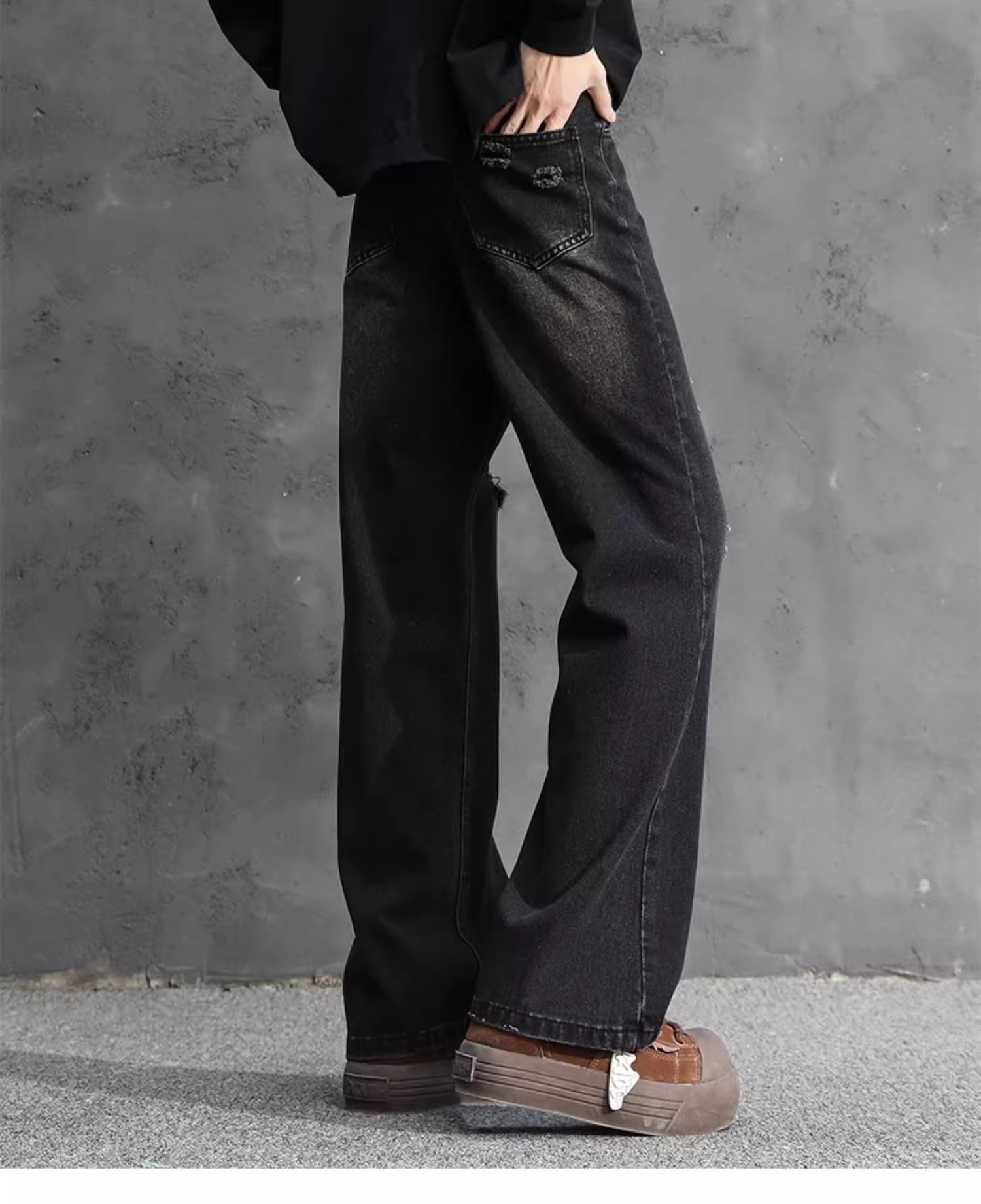NASA American Retro Ripped 청바지 남성 바지 봄과 가을 느슨한 스트레이트 올드 하이 스트리트 캐주얼 바지스토어 가기