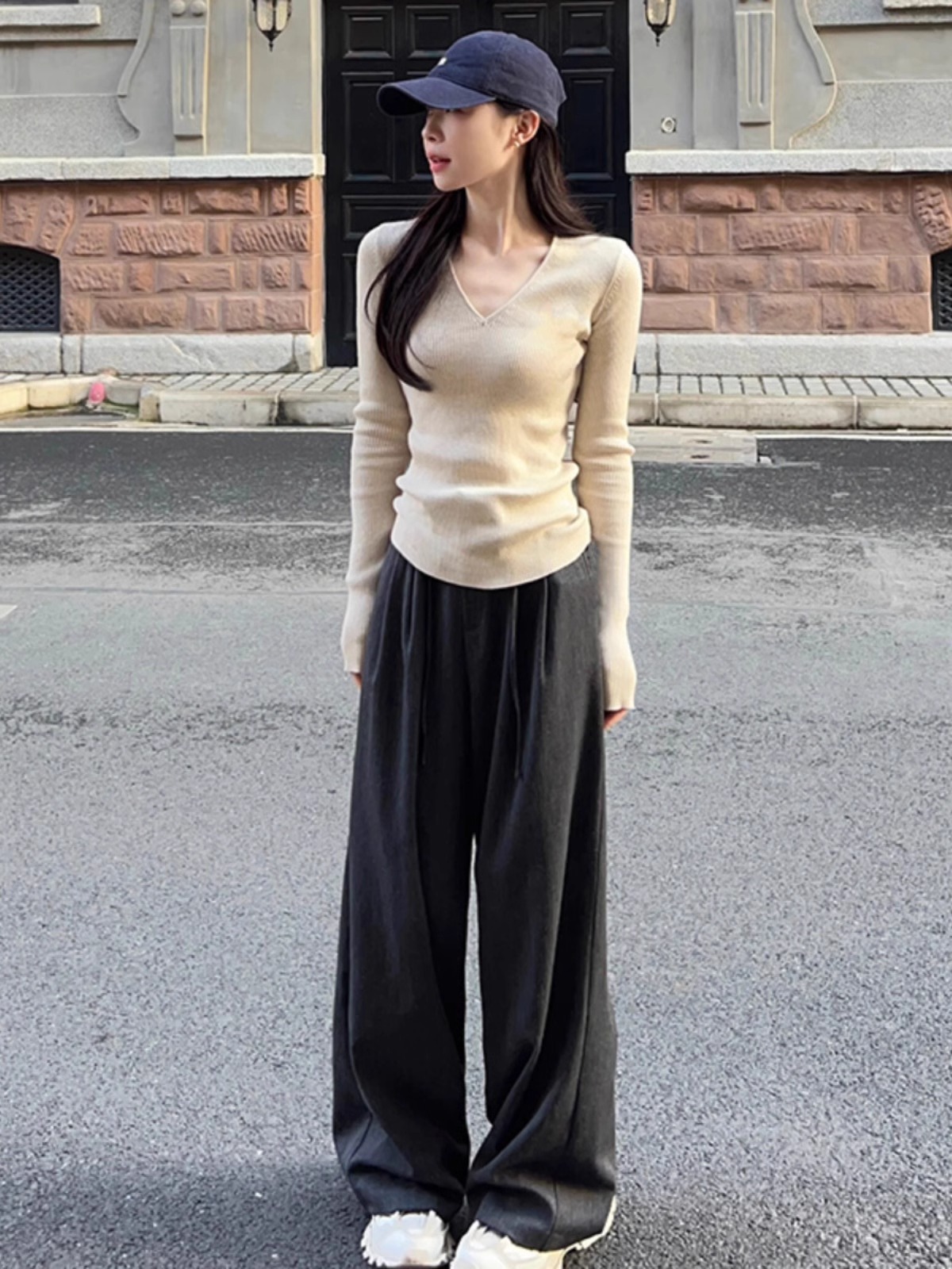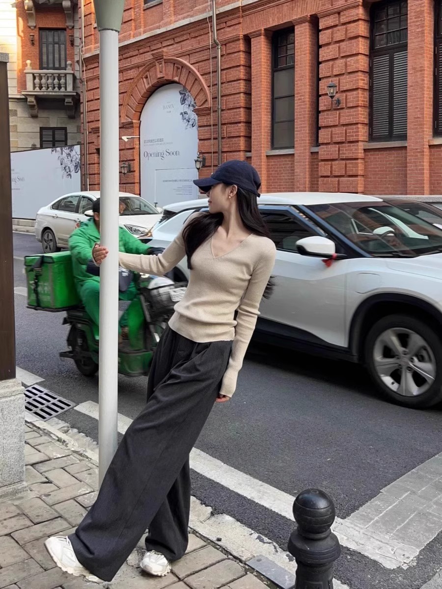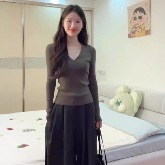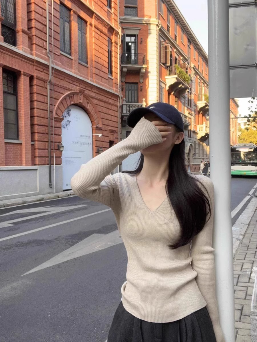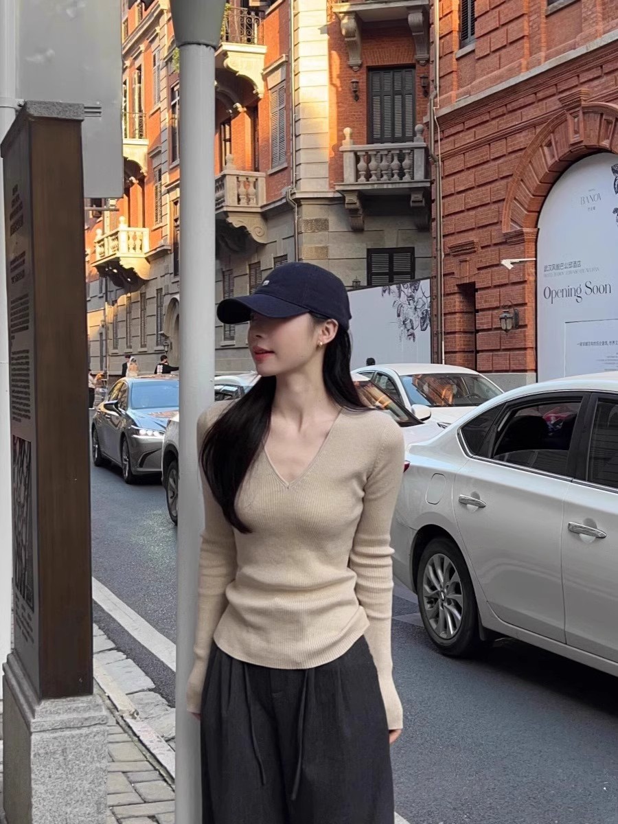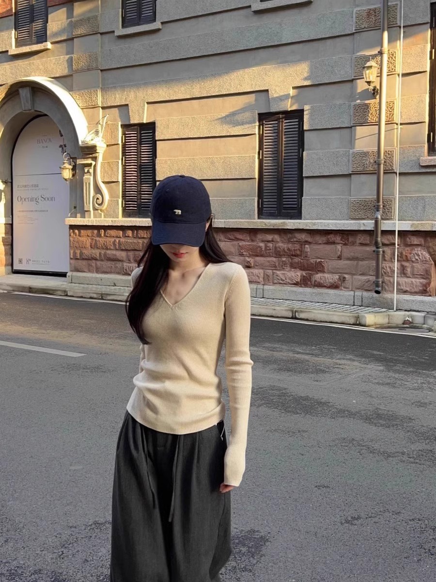 니트 바닥 가을과 겨울 2024 슬림 핏 슬림 올 매치 롱 슬리브 탑을위한 고급 외국 스타일의 새로운 스웨터 순수스토어 가기