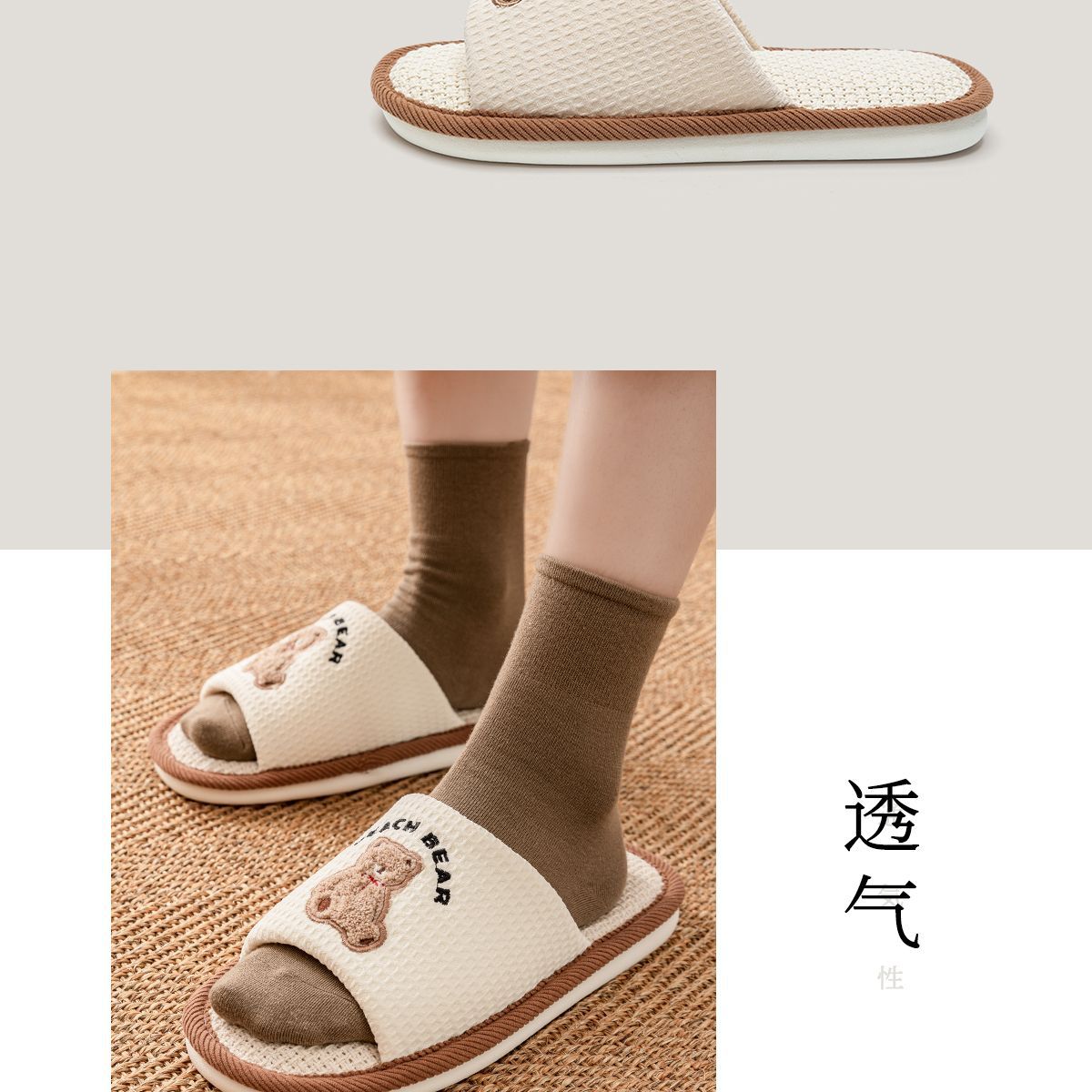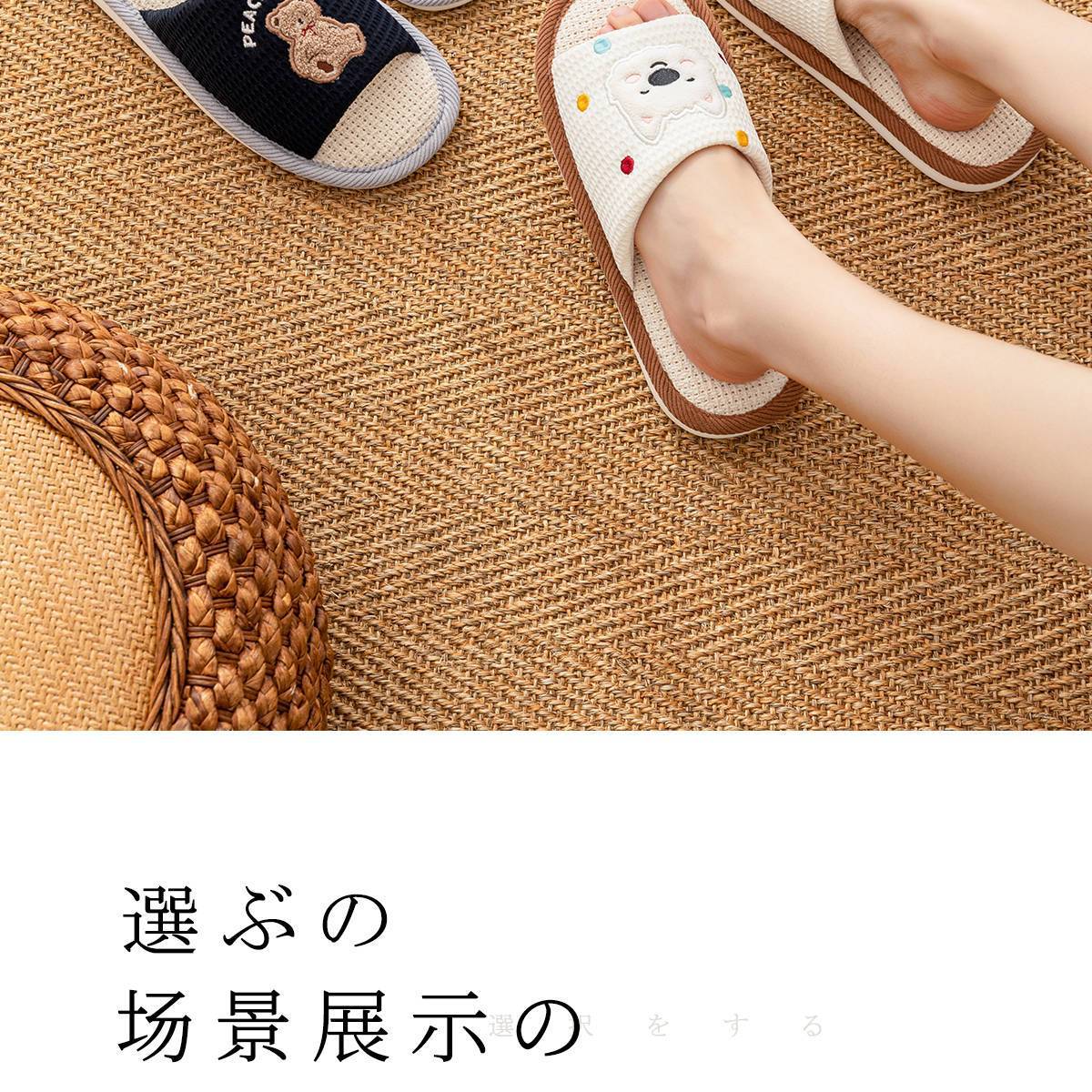 린넨 슬리퍼 여성용 봄과 가을 미끄럼 방지 실내 통기성 귀여운 실내 사계절 땀 흡수성 무성 면 리넨 천 슬리퍼 커플 여름스토어 가기