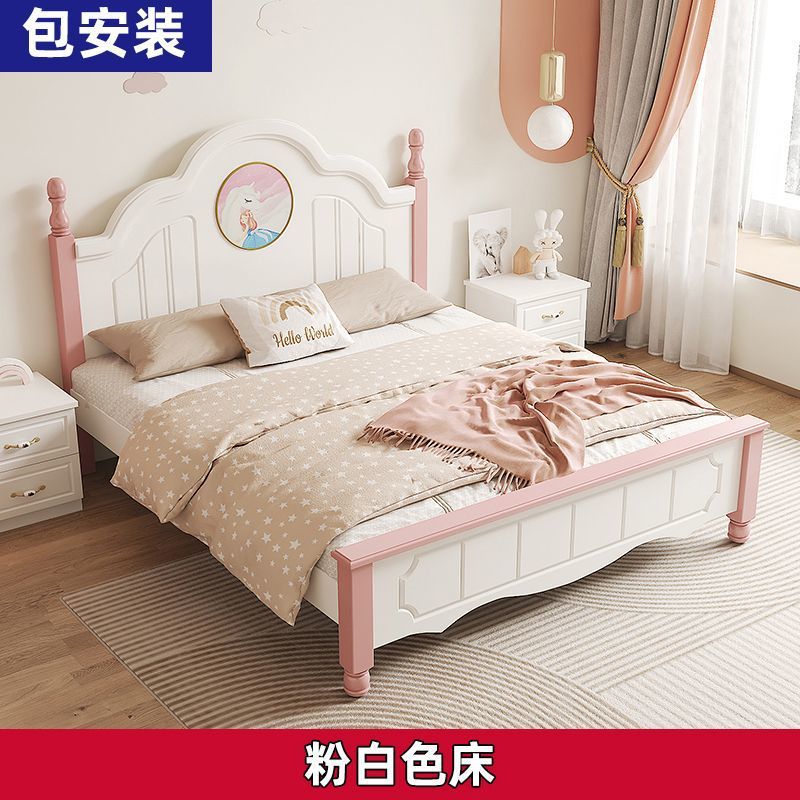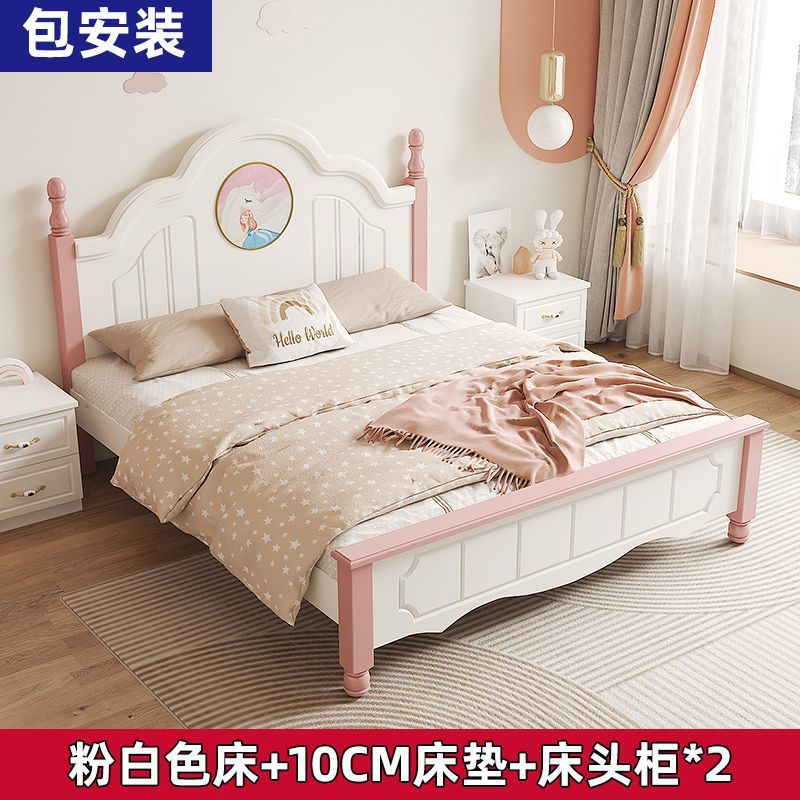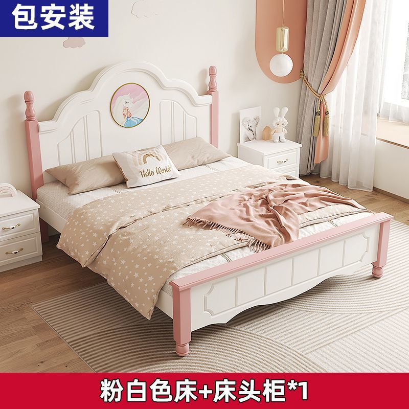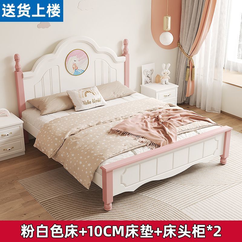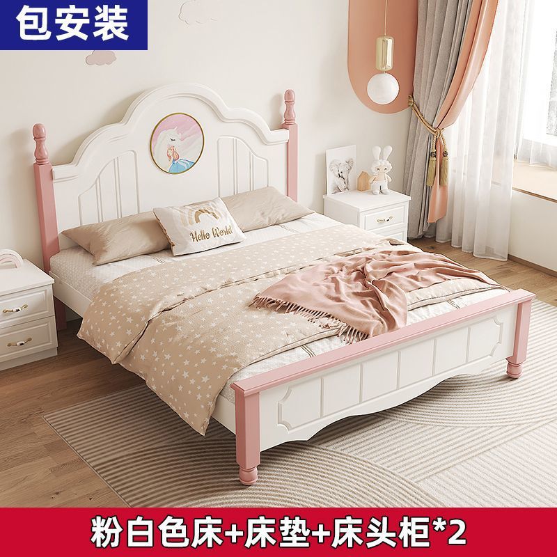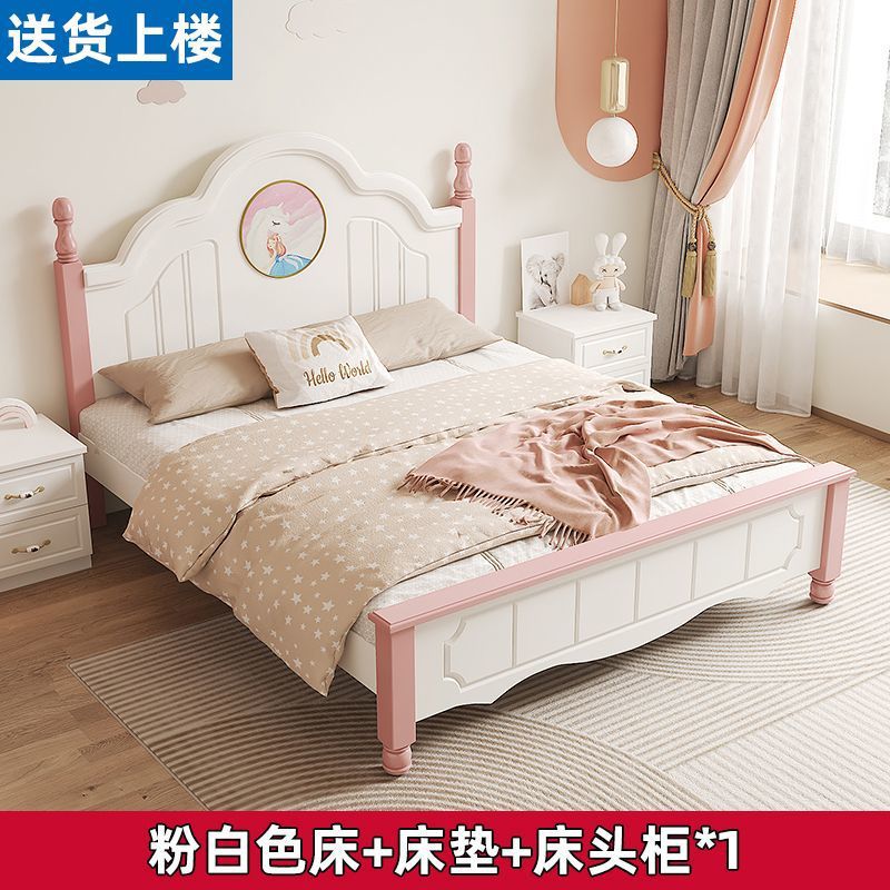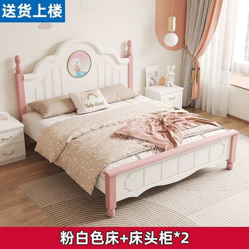 • 핑크 원목 침대 + 매트리스 + 협탁 * 1 (층별 배송 포함) --- 초특가 할인 진행 중!