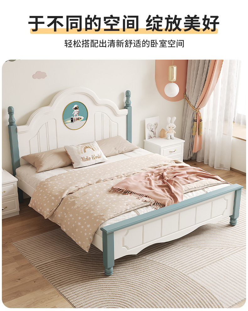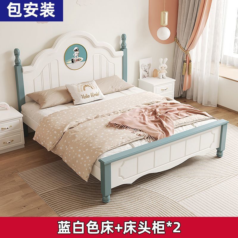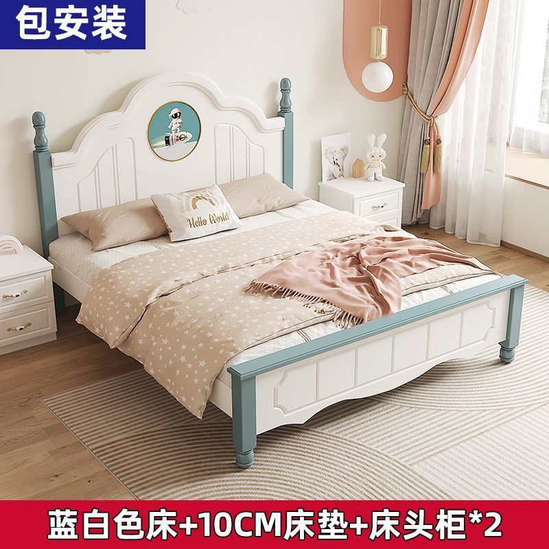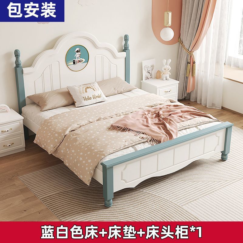 • 블루 원목 침대 + 매트리스 + 협탁 * 1 (설치 포함) --- 초특가 할인 중!