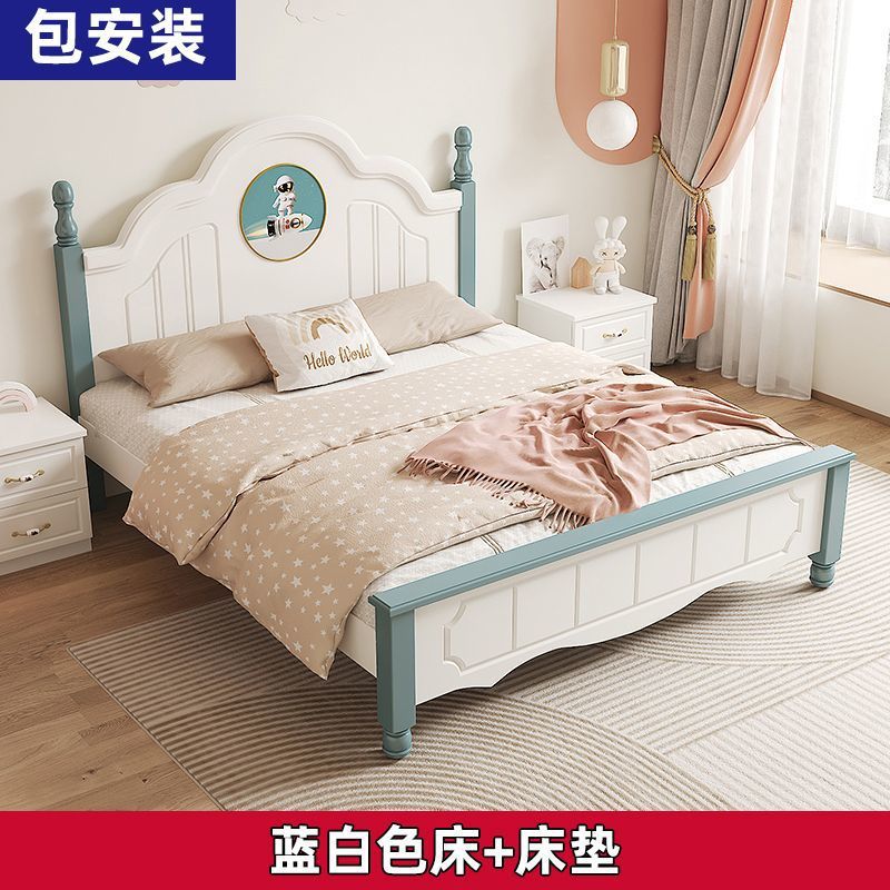 • 파란색 원목 침대 + 매트리스 (층별 배송 포함) --- 초특가 할인 진행 중!