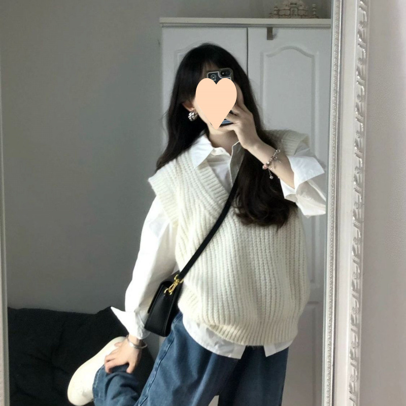 두 조각 세트 봄과 가을 새로운 도착 조끼 니트 조끼 여성용 느슨한 나이 감소 셔츠 탑스토어 가기