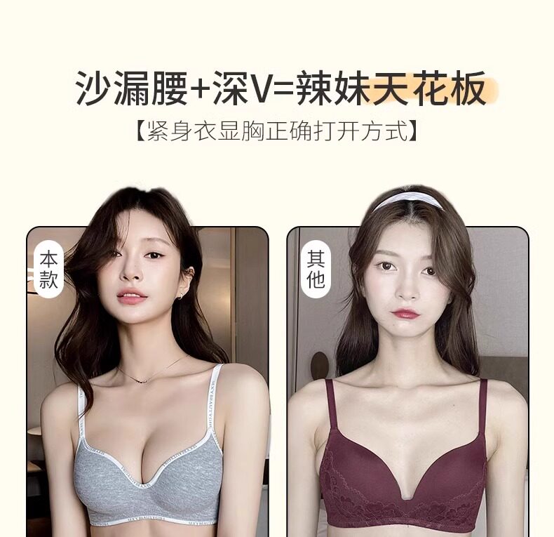 만화 가슴 모임 속옷 여성의 작은 가슴 큰 두꺼운 찐 빵 컵 처짐 방지 추적없는 편지 어깨 끈 브래지어스토어 가기