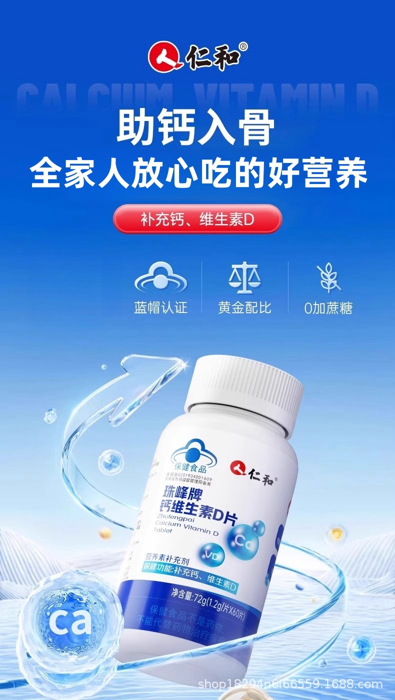 • Renhe Everest 브랜드 비타민 D 칼슘 정제 1병 [1.2gx50정]