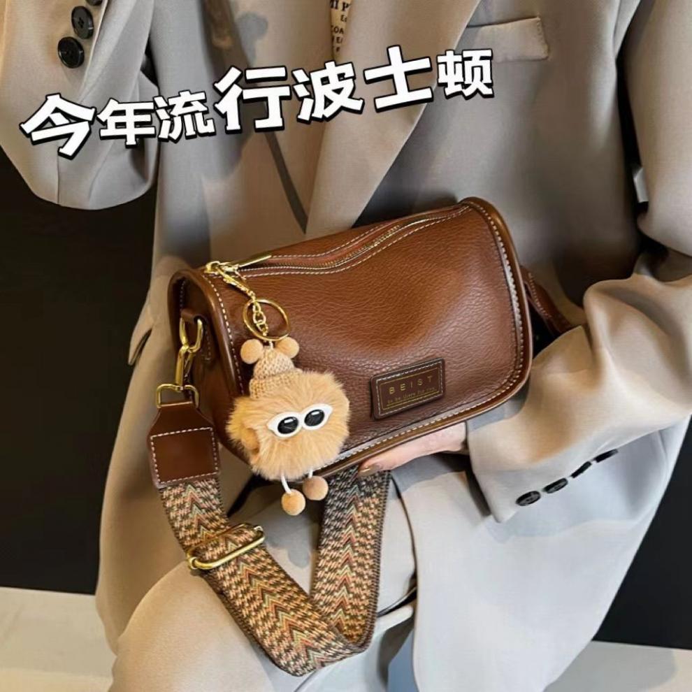 波士顿包包女斜挎小包单肩包高级真皮质感车缝小众通勤斜挎包