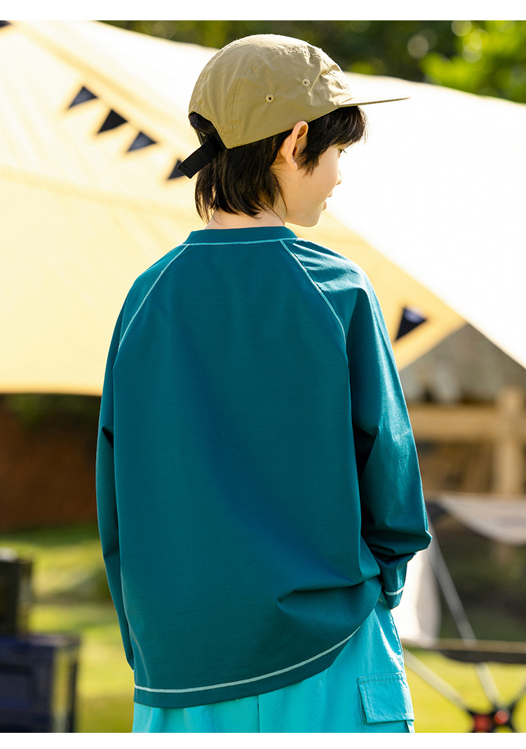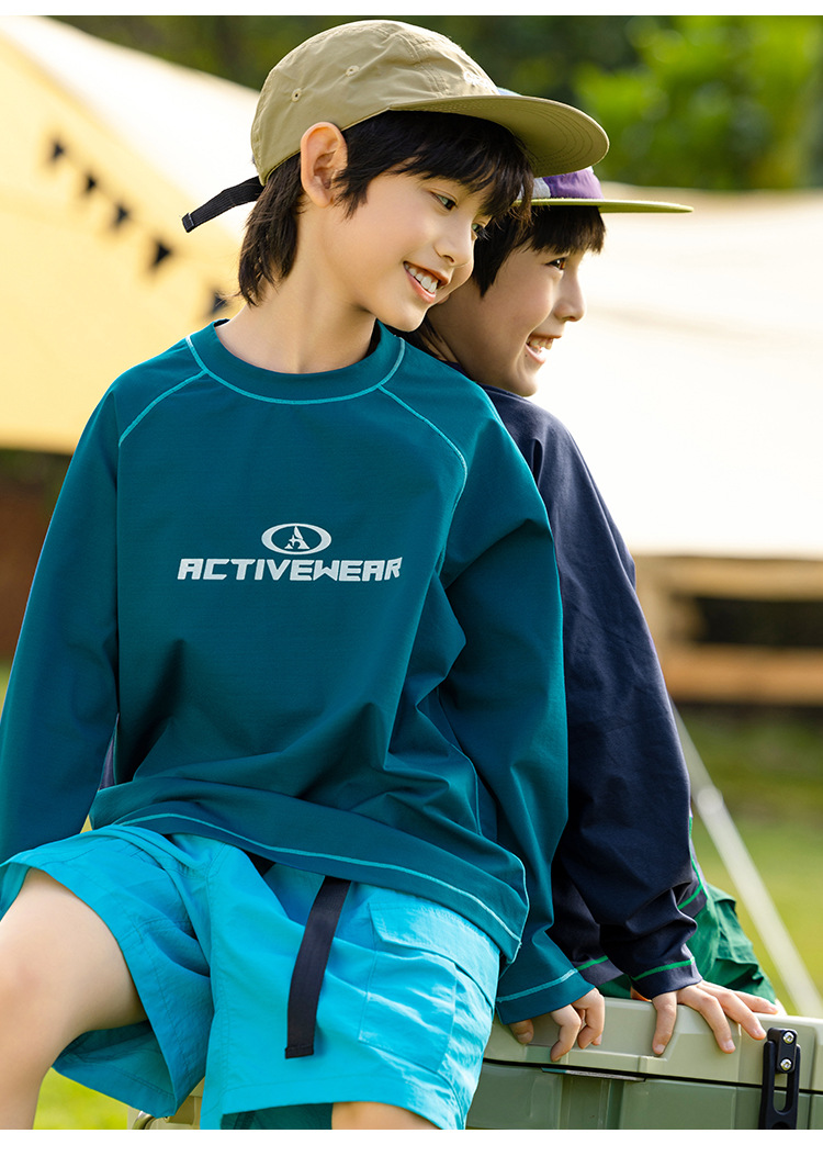 EK 아동복 산 야외 소년 퀵 건조 티셔츠 오리지널 원사 선 스크린 단순 명암 컬러 브라이트 라인 항균 스포츠 긴팔 티셔츠스토어 가기