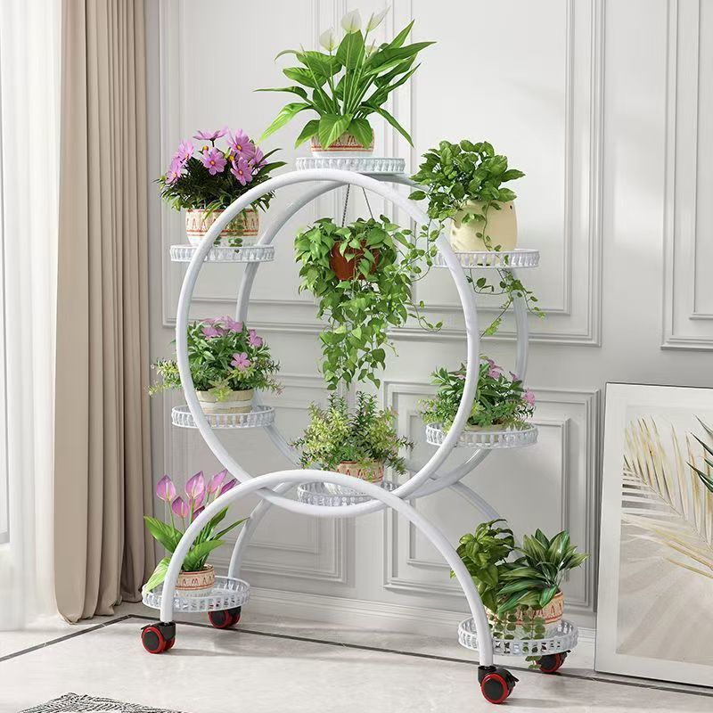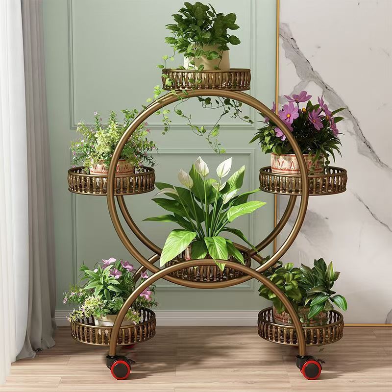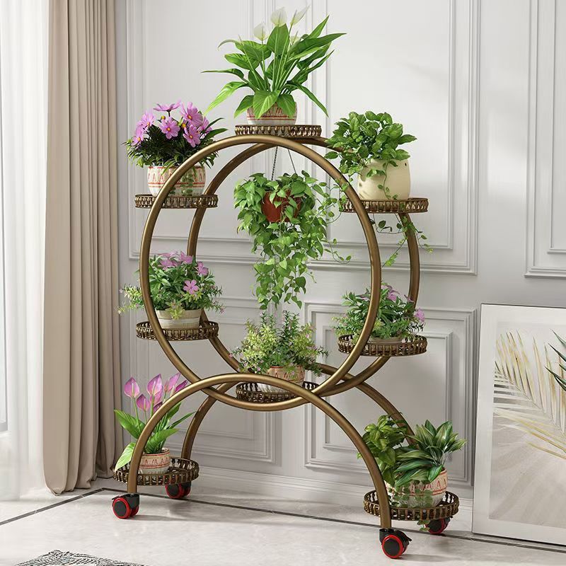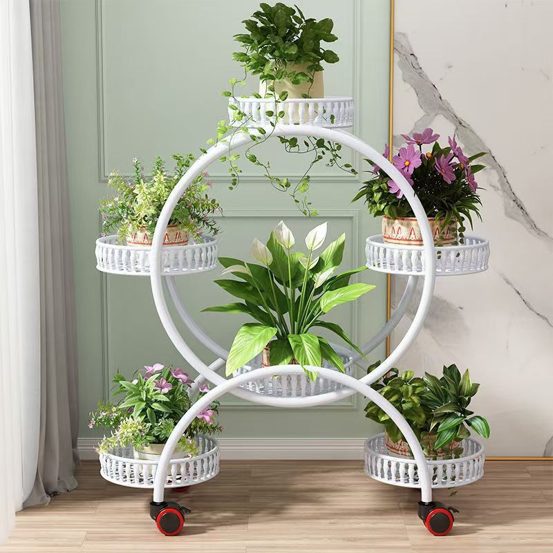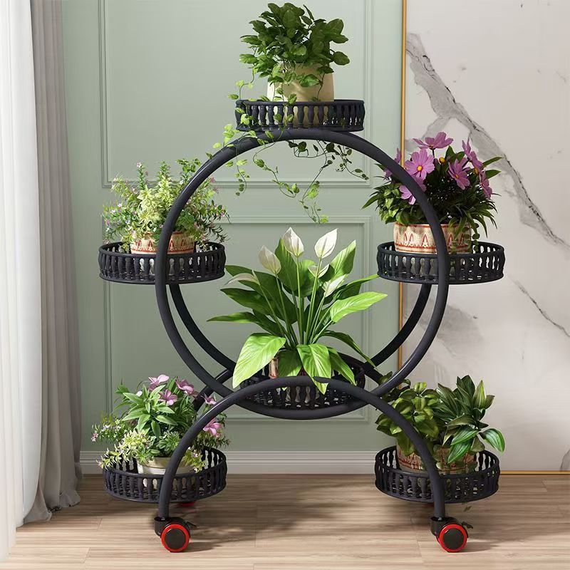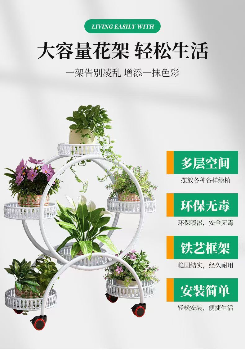 새로운 플라워 샵 플라워 랙 아이언 멀티 레이어 휠 플랜트 다발 랙 거실 발코니 바닥 서 움직일 수있는 플라워 포트 랙