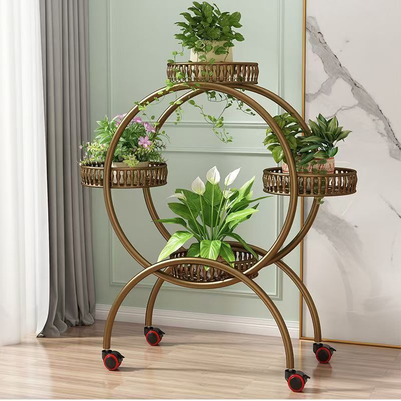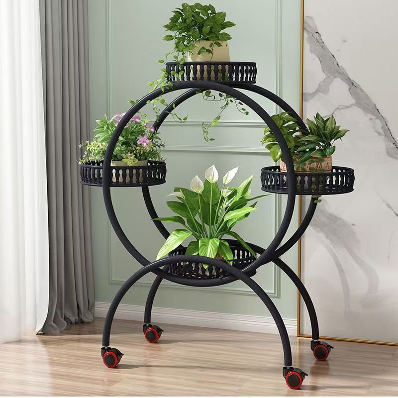 새로운 플라워 샵 플라워 랙 아이언 멀티 레이어 휠 플랜트 다발 랙 거실 발코니 바닥 서 움직일 수있는 플라워 포트 랙스토어 가기